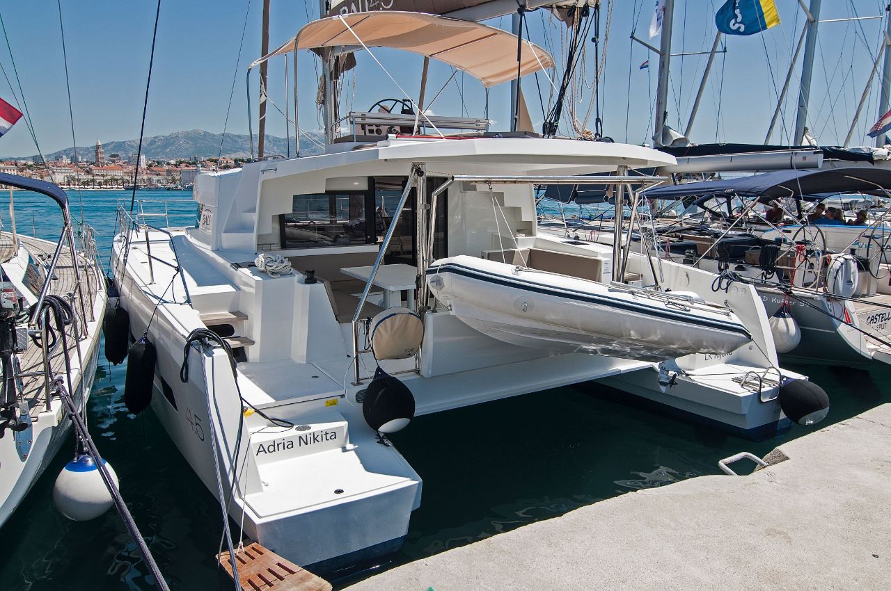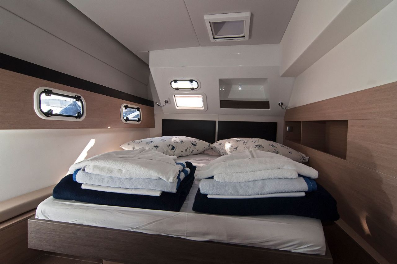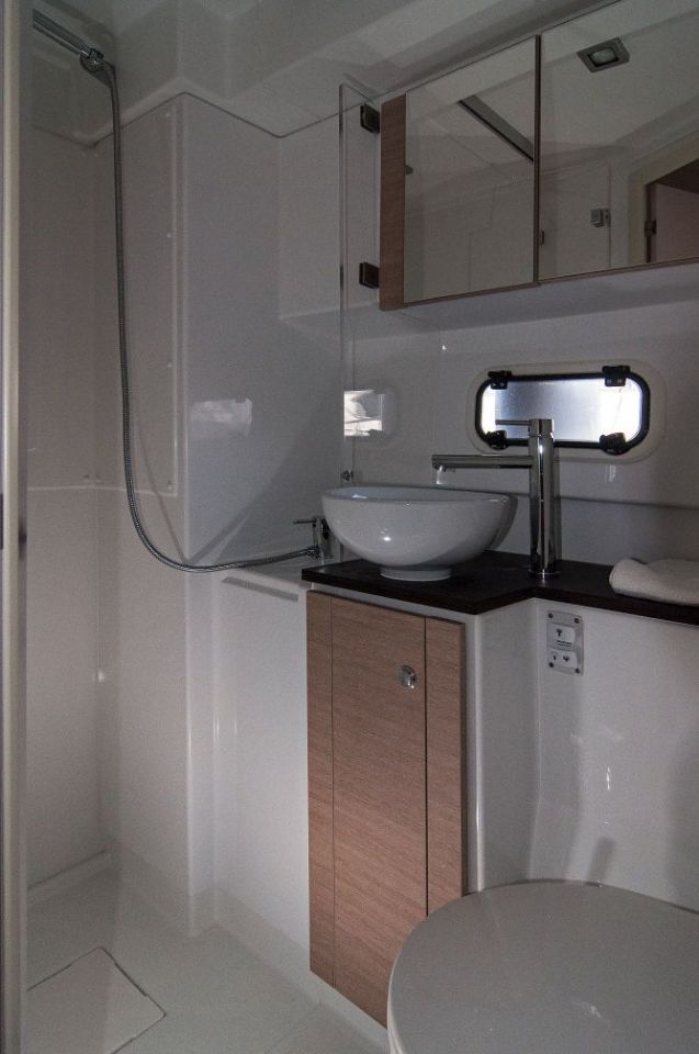 | Outside | 220 V-Landanschluss, Anker mit Kette, Biminitop, Cockpitdusche, Cockpitlautsprecher, Cockpitpolster, Cockpittisch, Deckpolster, elektr. Ankerwinsch, Fender, Festmacherleinen, Gangway, Windex |