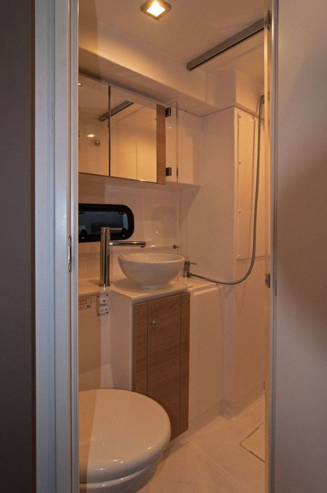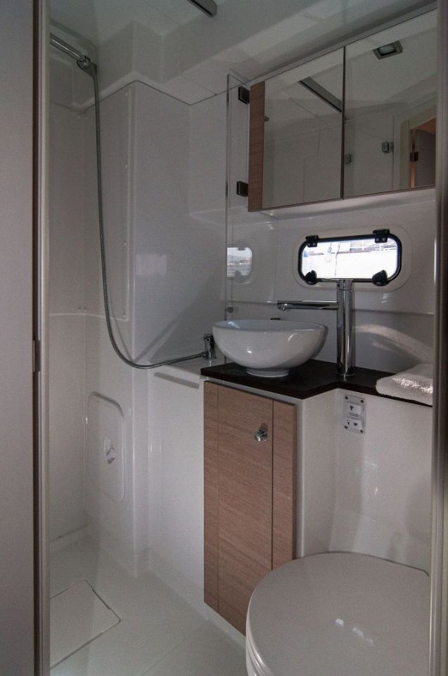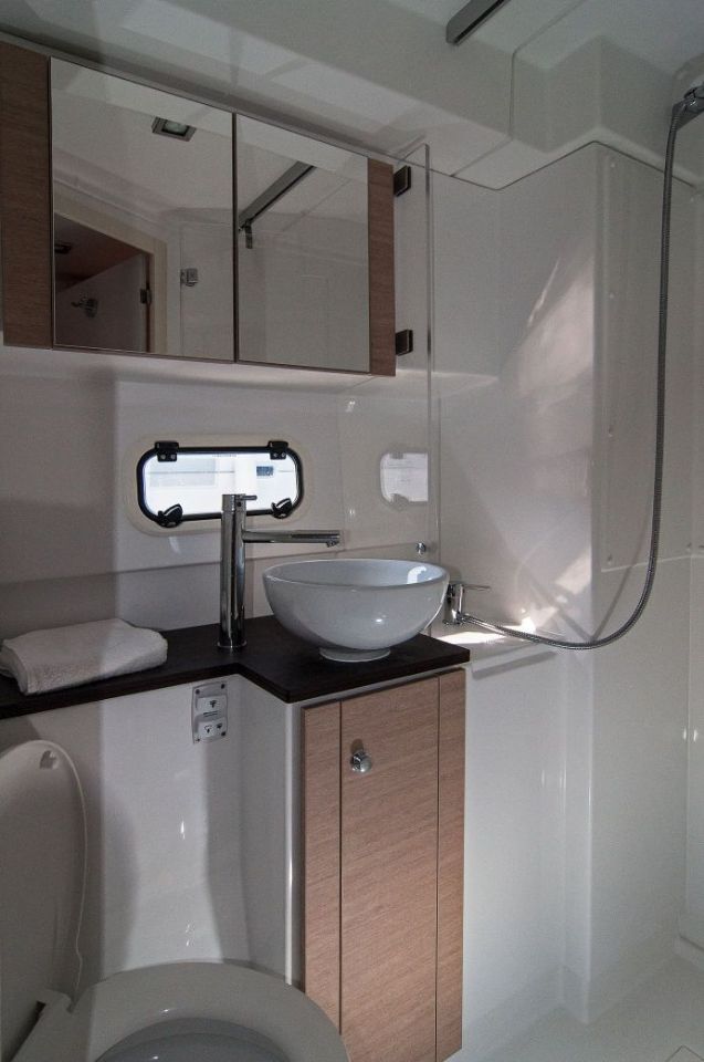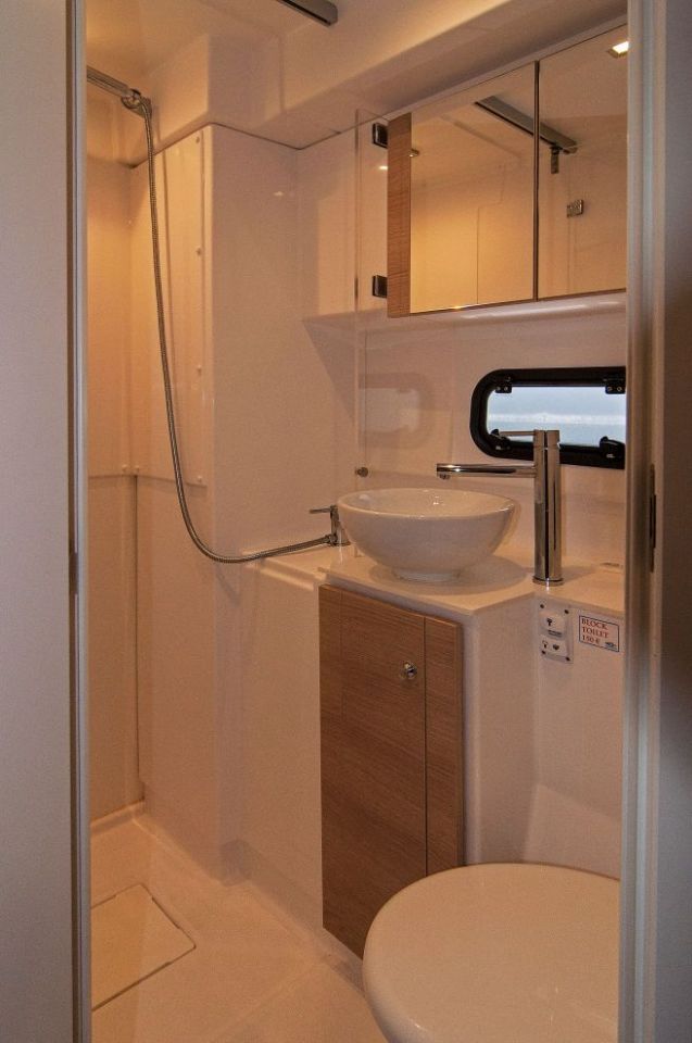| Inside | Backofen, Bluetooth Player, Eiswürfelmaschine, Gasherd, Gefrierschrank, Generator, Inverter 12V/220V, Kaffeemaschine, Klimaanlage (ohne Landstrombedarf), Kühlschrank, Ladegerät, Mikrowelle, Pantryausstattung, Radio, TV, Warmwasser, WC (elektr.) |