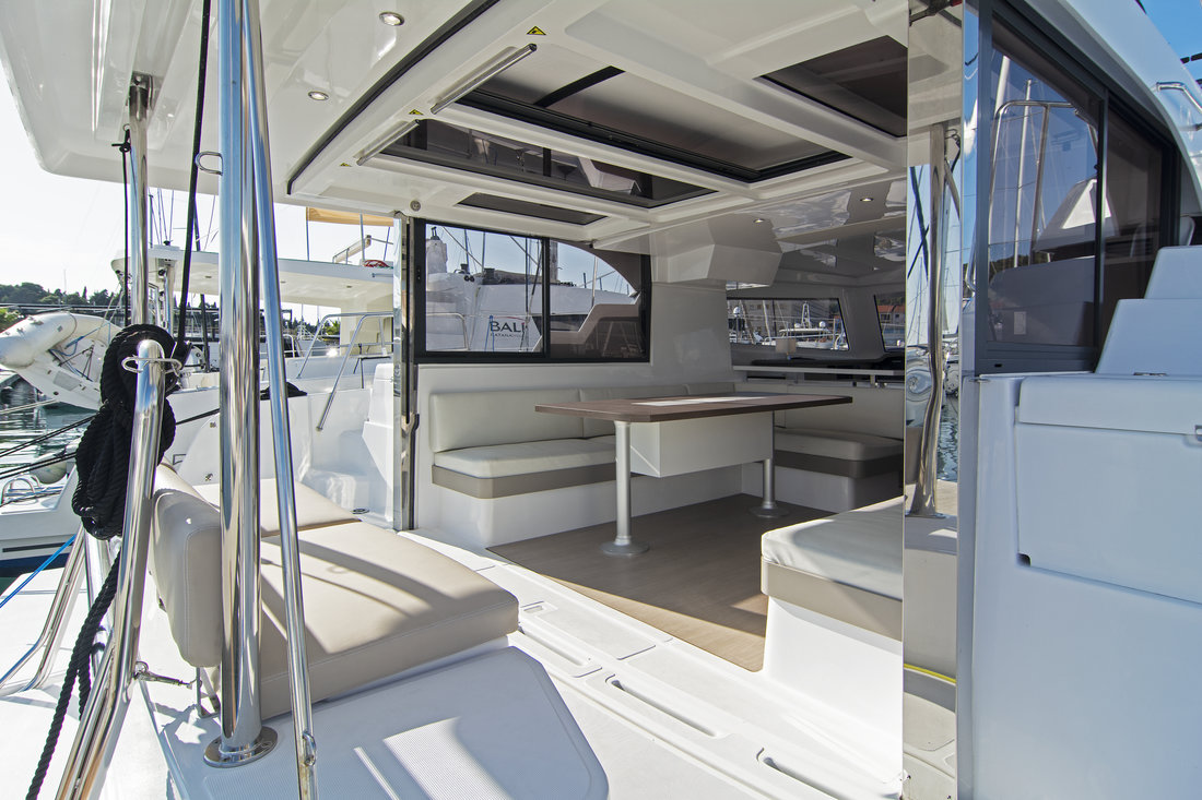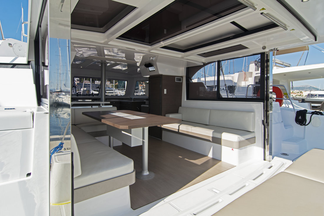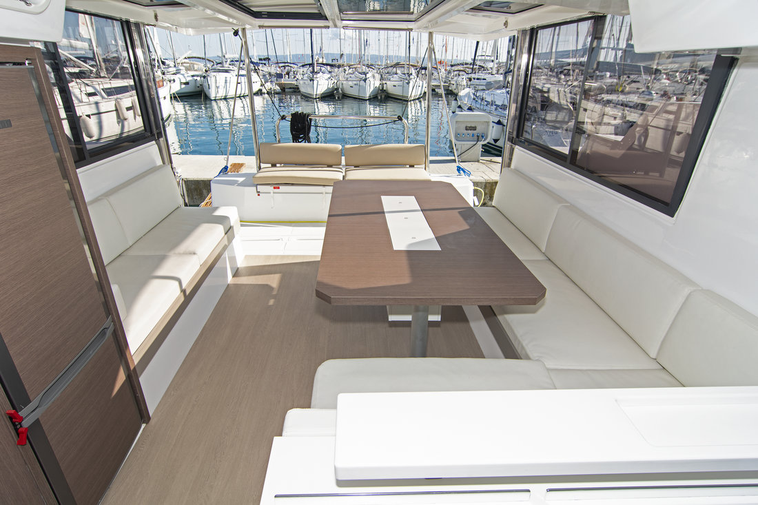| Outside | Biminitop, Cockpitdusche, Cockpitlautsprecher, Cockpitpolster, Cockpittisch, Deckpolster, Grill |