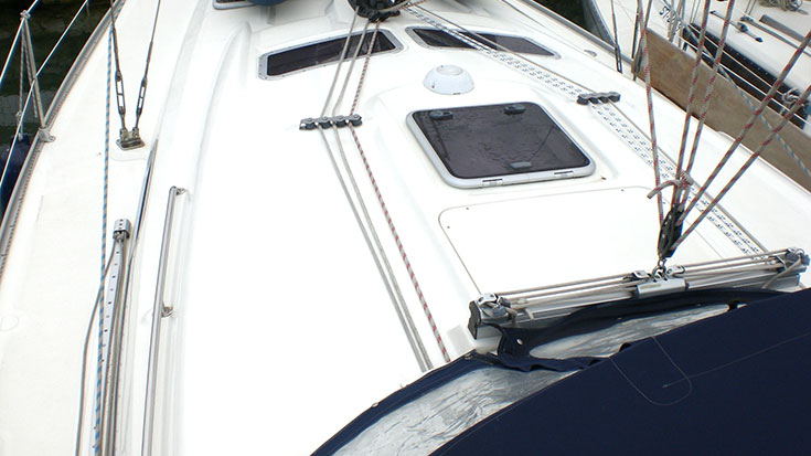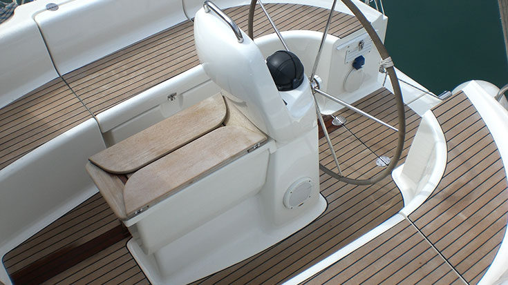 | Outside | Anker mit Kette, Anker mit Seil, Badeleiter, Biminitop, Bootshaken, Cockpitdusche, Cockpitlautsprecher, Deckbürste, Dieselkanister , elektr. Ankerwinsch, Fender, Festmacherleinen, Gangway, Kunststoff-Eimer (Pütz), Sprayhood, Teak im Cockpit, Wasserschlauch, Winschen |