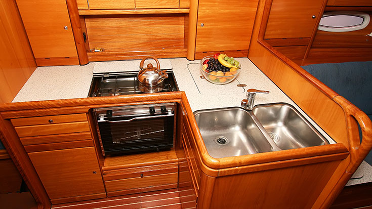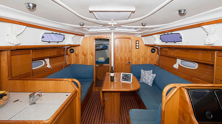 | Inside | Backofen, Borduhr, Dusche, Gasherd, Kleiderbügel, Kühlschrank, Landstromkabel, Luftpumpe für Beiboot, Pantryausstattung, Radio mit CD und MP3, Trichter, WC-Pumpe |