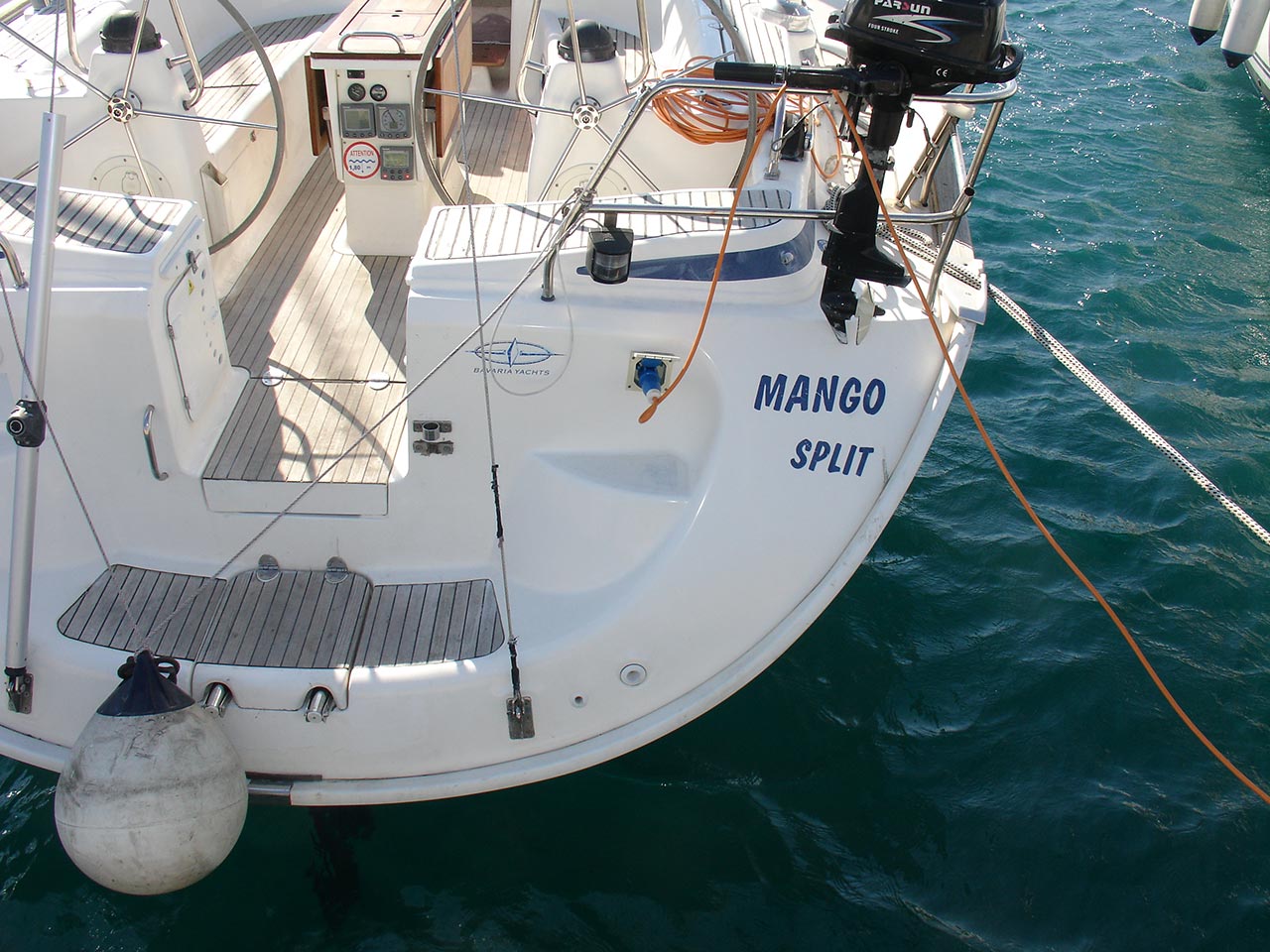 | Outside | 220 V-Landanschluss, Anker mit Kette, Biminitop, Bootshaken, Cockpitdusche, Cockpitlautsprecher, Cockpittisch, elektr. Ankerwinsch, Fender, Festmacherleinen, Gangway, Sprayhood, Wantenschneider |