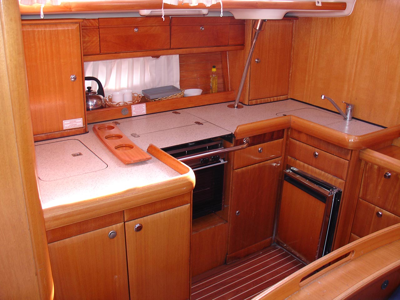 | Navigation | Barometer, Fernglas, GPS mit Kartenplotter im Salon, Hafenhandbücher, Handpeilkompass, Navigationsbesteck, Seekarten, Tridata (Log, Echolot, Windm.), Windmesser |