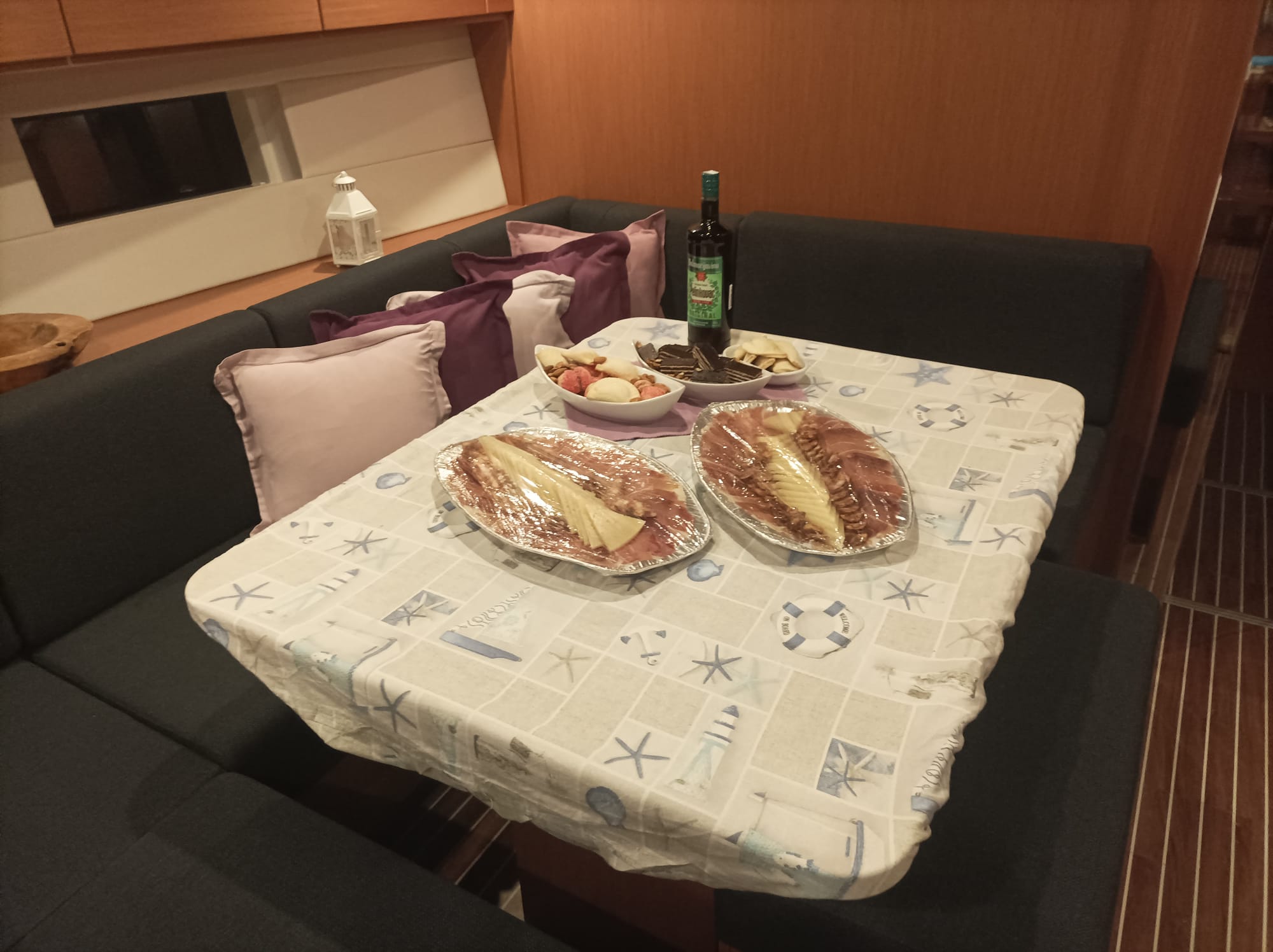 | Safety | Autopilot, Bordapotheke, Bugstrahlruder, elektr. Bilgepumpe, Feststoffschwimmwesten, Feuerlöscher, Handbilgepumpe, Leuchtboje, Lifebelts, Nebelhorn, Notsignale, Radarreflektor, Taschenlampe, UKW-Funk |