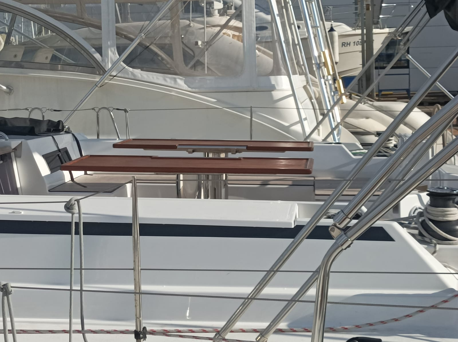 | Safety | Autopilot, Bordapotheke, Bugstrahlruder, elektr. Bilgepumpe, Feststoffschwimmwesten, Feuerlöscher, Handbilgepumpe, Leuchtboje, Lifebelts, Nebelhorn, Notsignale, Radarreflektor, Rettungswesten, Taschenlampe, UKW-Funk |