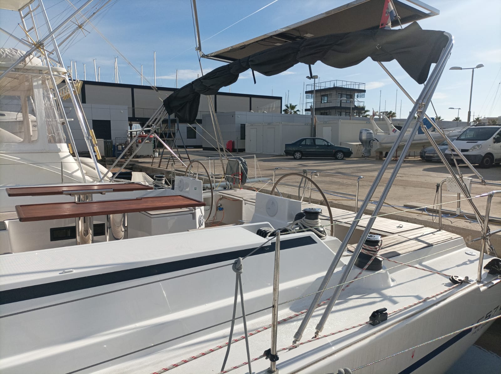 | Outside | 220 V-Landanschluss, Badeleiter, Badeplattform, Biminitop, Cockpitdusche, Cockpitlautsprecher, Cockpitpolster, elektr. Ankerwinsch, Fender, Gangway, Solaranlage, Sprayhood |