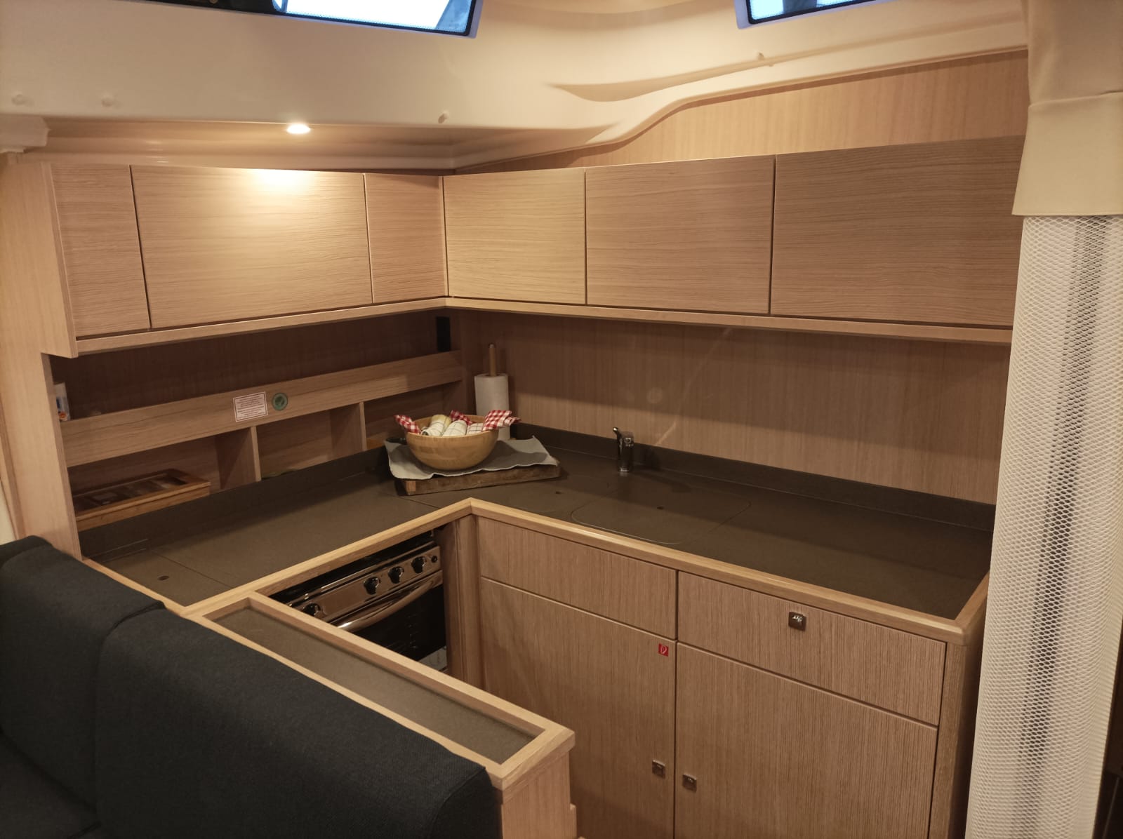 | Inside | Backofen, Eiswürfelmaschine, Flexschott, Fön, Gasherd, Generator, Geschirr, Heizung, Inverter 12V/220V, Klimaanlage (ohne Landstrombedarf), Kühlschrank, Ladegerät, Pantryausstattung, Radio mit MP3 , TV, Warmwasser |