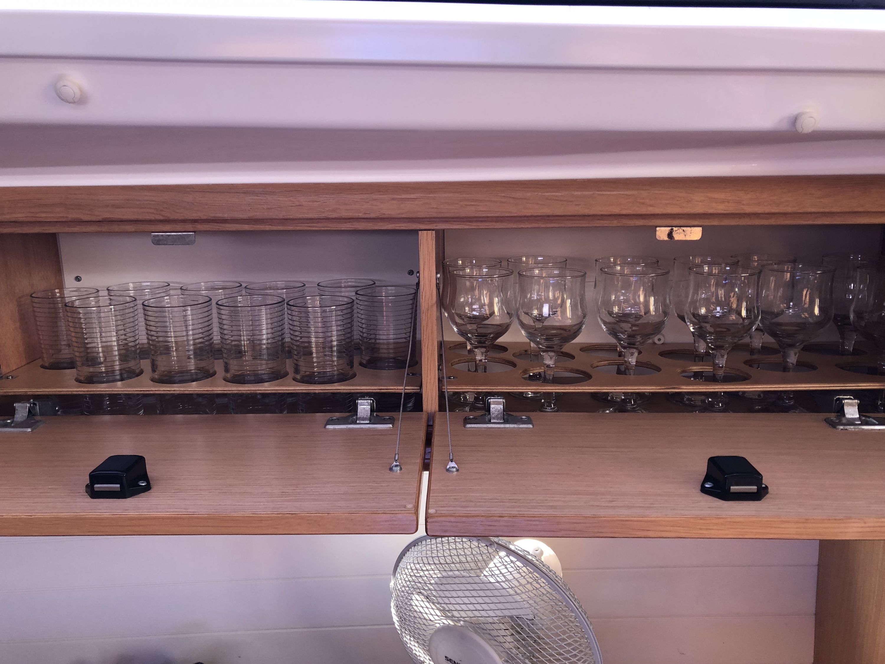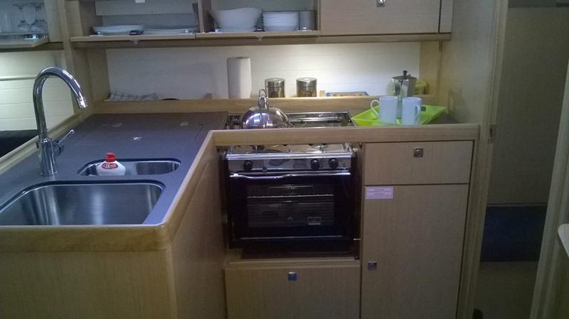 | Safety | Autopilot, Bootsmannstuhl, Bordapotheke, Bordwerkzeug, Bugstrahlruder, elektr. Bilgepumpe, Feststoffschwimmwesten, Feueraxt, Feuerlöscher, Handbilgepumpe, Kinderschwimmwesten, Lifebelts, Nebelhorn, Notsignale, Radarreflektor, Sicherheitsausrüstung, Suchscheinwerfer, UKW-Funk, Zweitanker |