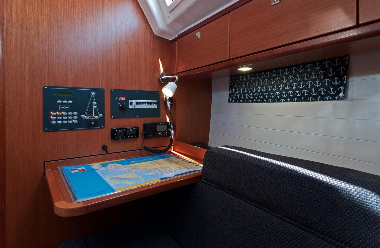 | Navigation | GPS mit Kartenplotter im Cockpit, Hafenhandbücher, Seekarten, Tridata (Log, Echolot, Windm.) |