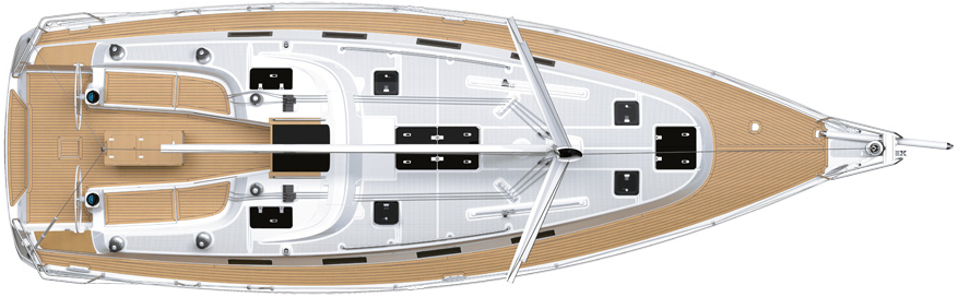 | Outside | Biminitop, Cockpitdusche, Cockpitlautsprecher, Cockpittisch, elektr. Ankerwinsch, Fallwinschen, Faltpropeller, Gangway, Genuawinschen, Selbstholende Winschen, Sonnensegel, Spi-Winschen, Sprayhood |