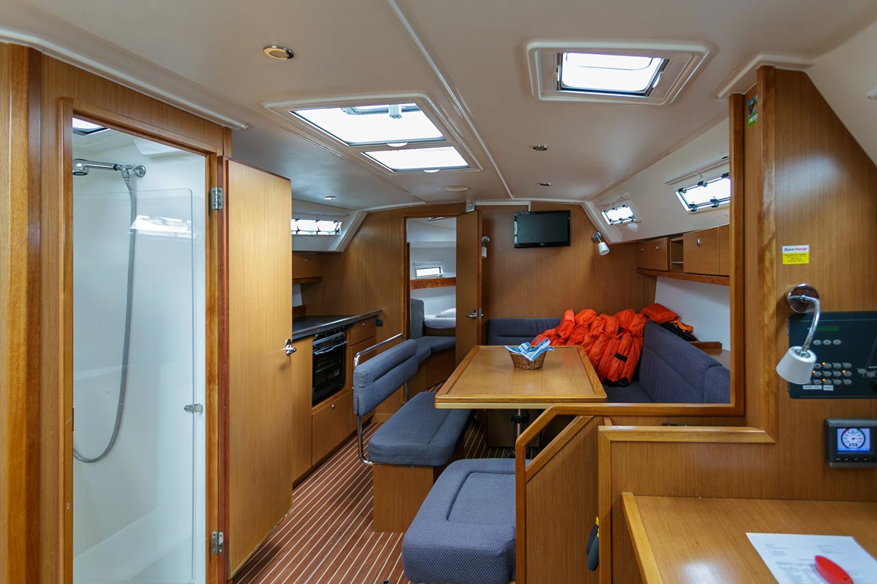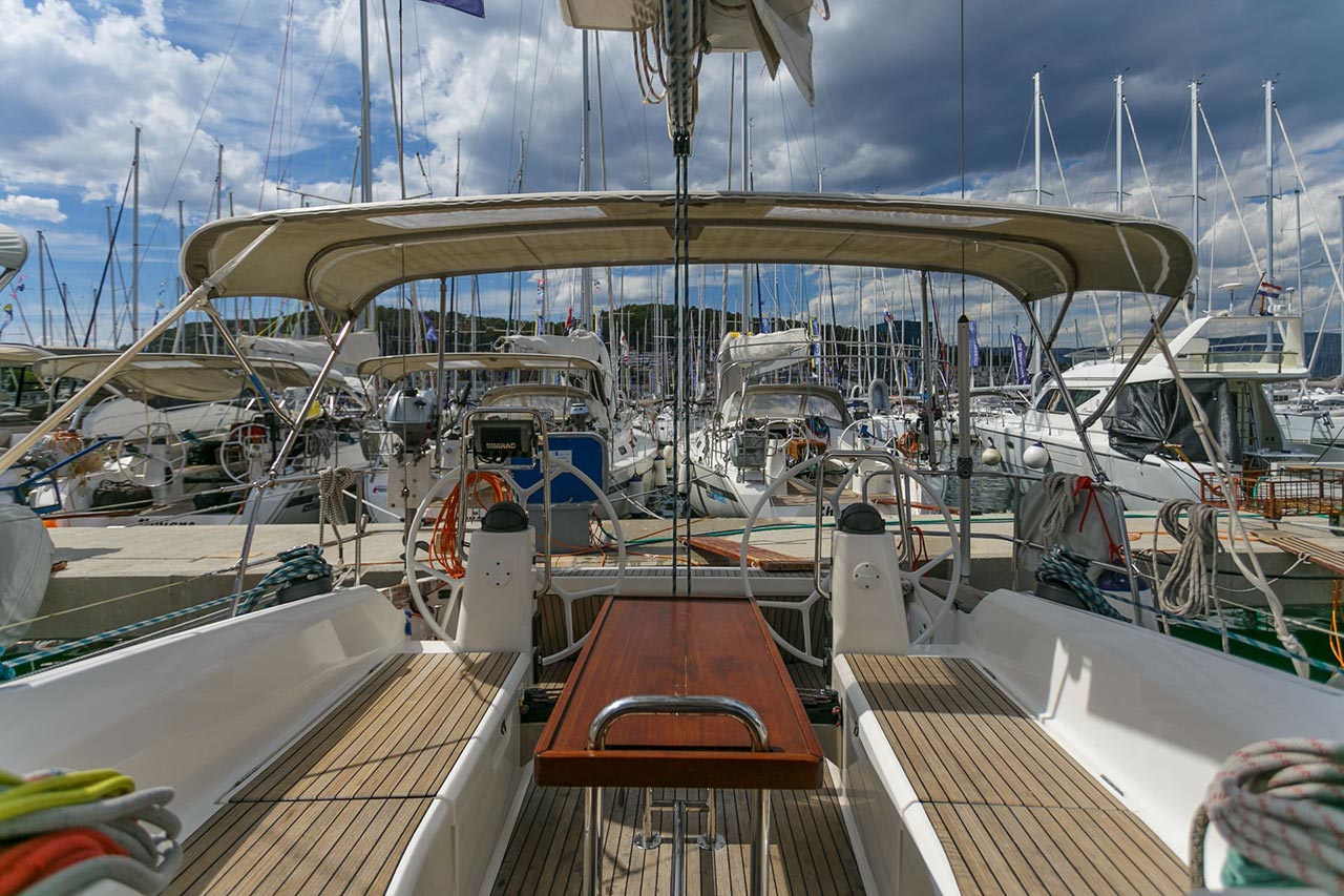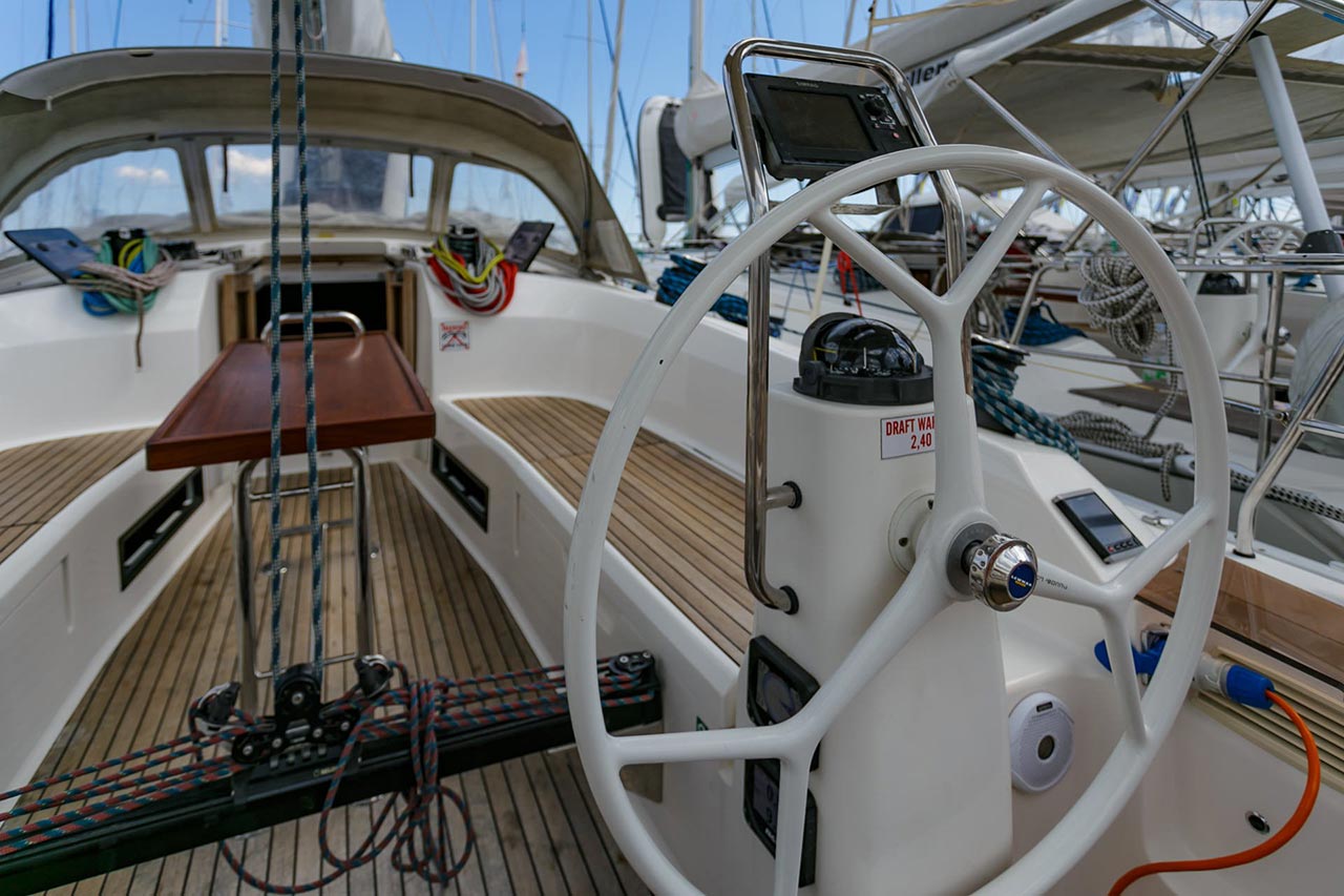 | Outside | Biminitop, Cockpitdusche, Cockpitlautsprecher, Cockpittisch, elektr. Ankerwinsch, Fallwinschen, Faltpropeller, Gangway, Genuawinschen, Selbstholende Winschen, Sonnensegel, Spi-Winschen, Sprayhood |