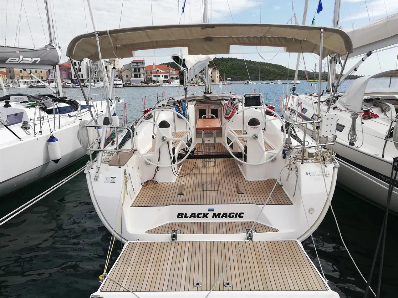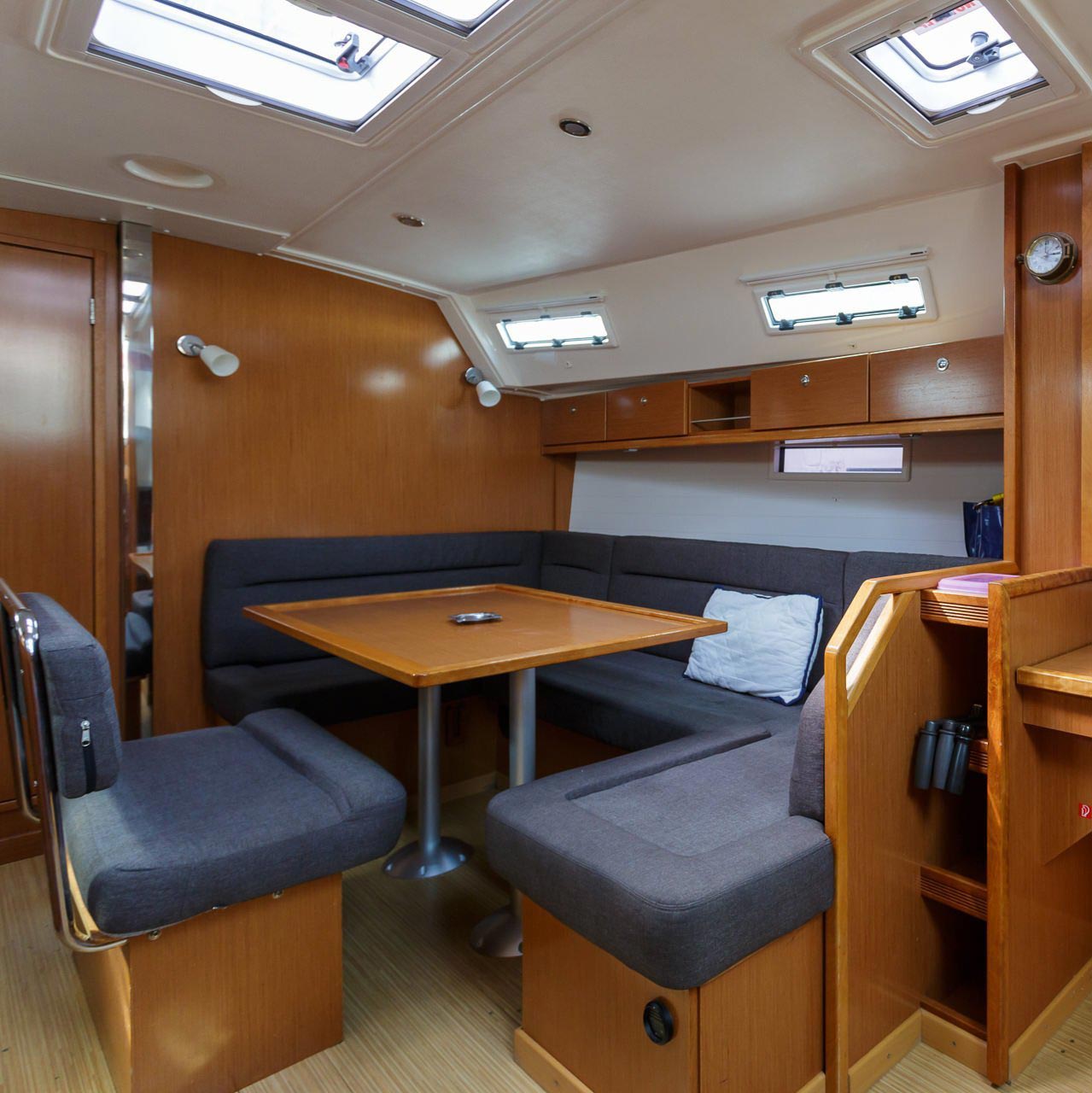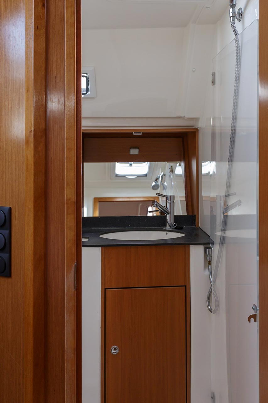 | Outside | Biminitop, Cockpitdusche, Cockpitlautsprecher, Cockpittisch, elektr. Ankerwinsch, Fallwinschen, Faltpropeller, Gangway, Genuawinschen, Selbstholende Winschen, Sonnensegel, Spi-Winschen, Sprayhood |