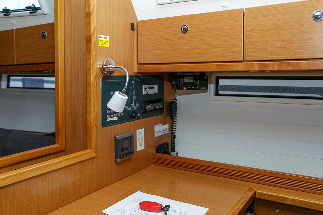 | Safety | Autopilot, Bordapotheke, elektr. Bilgepumpe, Feststoffschwimmwesten, GMDSS, Leuchtboje, Lifebelts, Notpinne, Notsignale, Rettungskragen, Taschenlampe |