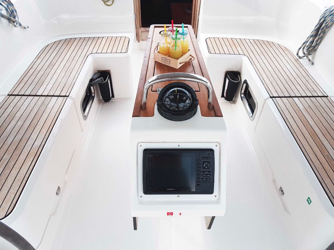 | Safety | Autopilot, Bordapotheke, Bugstrahlruder, Feststoffschwimmwesten, Feuerlöscher, Notpinne, Sicherheitsausrüstung, UKW-Funk, Zweitanker |