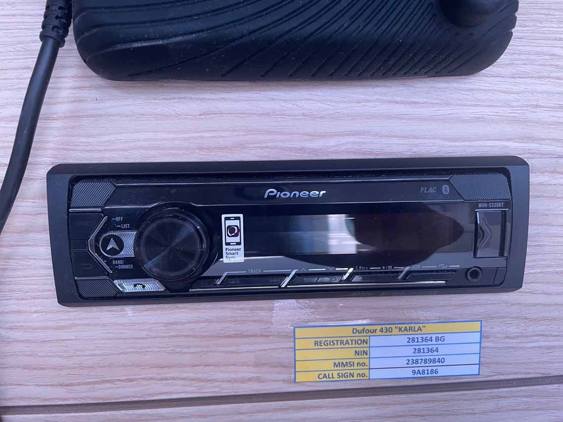 | Outside | 220 V-Landanschluss, Anker mit Kette, Biminitop, Bootshaken, Cockpitdusche, Cockpitlautsprecher, Cockpittisch, elektr. Ankerwinsch, Fender, Festmacherleinen, Gangway, Grill, Kugelfender, Kunststoff-Eimer (Pütz), Solaranlage, Sprayhood, Teak im Cockpit, Wasserschlauch |