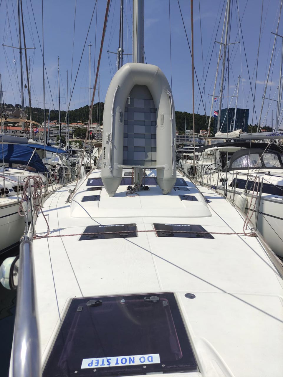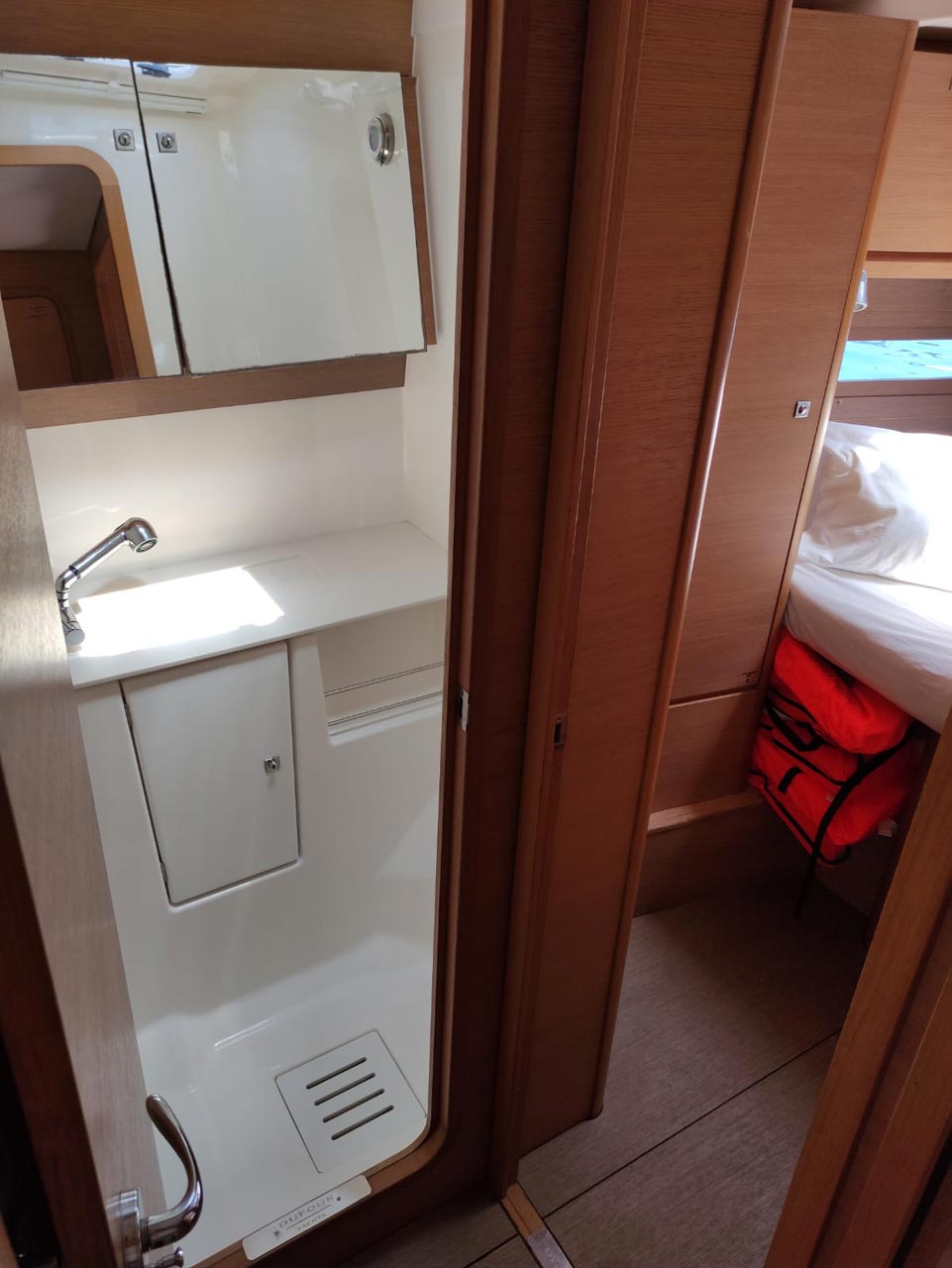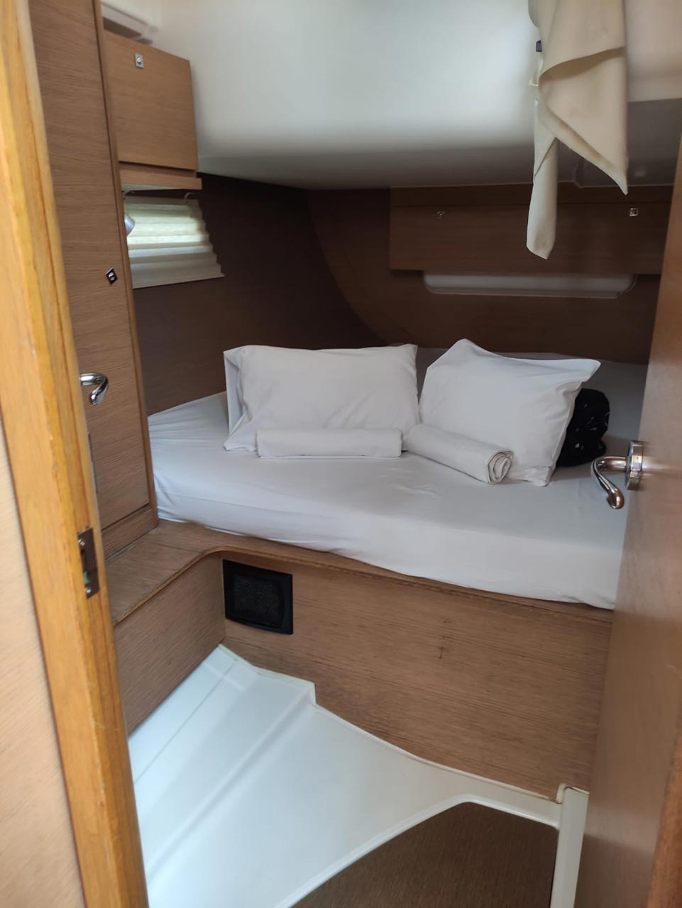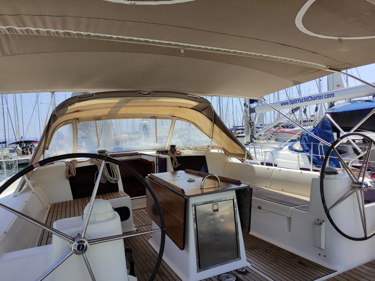 | Outside | 220 V-Landanschluss, Anker mit Kette, Ankerwinsch, Badeplattform, Biminitop, Bootshaken, Cockpitdusche, Cockpitkühlschrank, Cockpitlautsprecher, Cockpitpolster, Cockpittisch, Dieselkanister , elektr. Ankerwinsch, Fender, Festmacherleinen, Gangway, Kugelfender, Kunststoff-Eimer (Pütz), Sprayhood, Teak im Cockpit, Wantenschneider, Wasserkanister , Wasserschlauch, Windex |