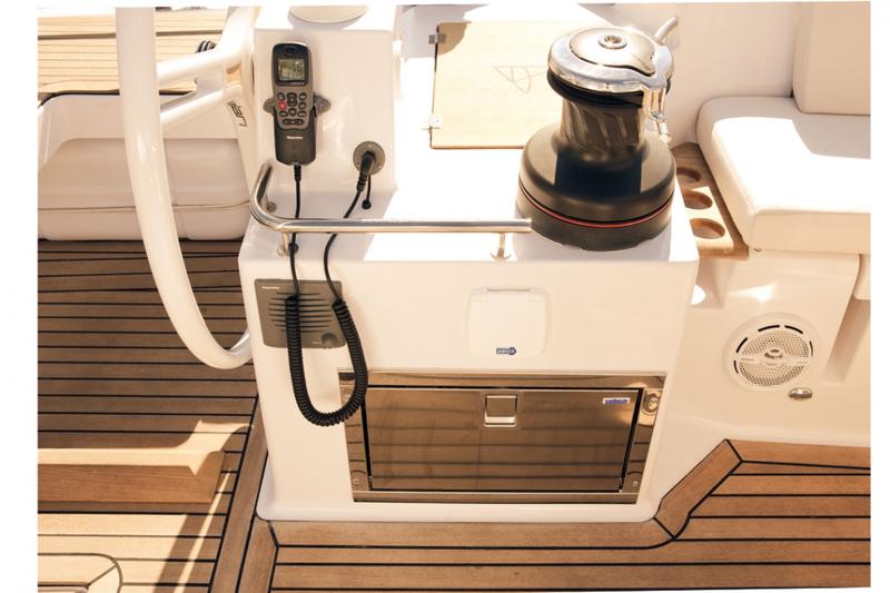 | Outside | 12 V-Anschluss, 220 V-Landanschluss, Anker mit Kette, Badeplattform, Biminitop, Bootshaken, Cockpitdusche, Cockpitkühlschrank, Cockpitlautsprecher, Cockpitpolster, Cockpittisch, Deckbeleuchtung, Deckpolster, elektr. Ankerwinsch, Fender, Festmacherleinen, Gangway, Solaranlage, Sprayhood, Teak im Cockpit, Windex |