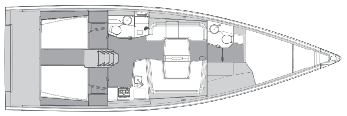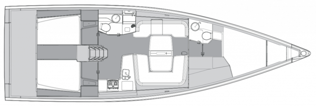 | Outside | Biminitop, Cockpitlautsprecher, Cockpitpolster, Faltpropeller, Teak im Cockpit |