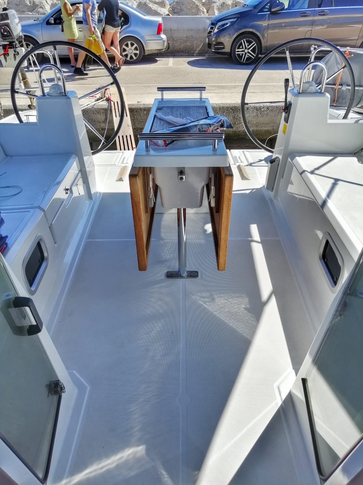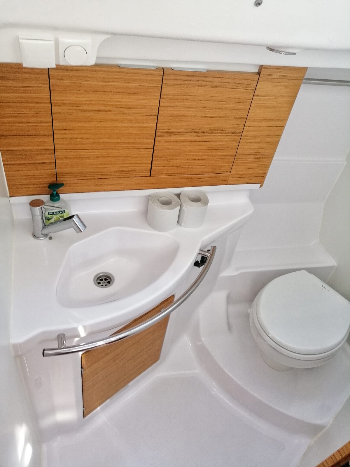 | Outside | 220 V-Landanschluss, Abnehmbarer Cockpittisch, Badeleiter, Biminitop, Cockpitdusche, Cockpitlautsprecher, Cockpitleuchte, elektr. Ankerwinsch, Fernsteuerung für elektr. Ankerwinsch, Sprayhood, Wasserschlauch |