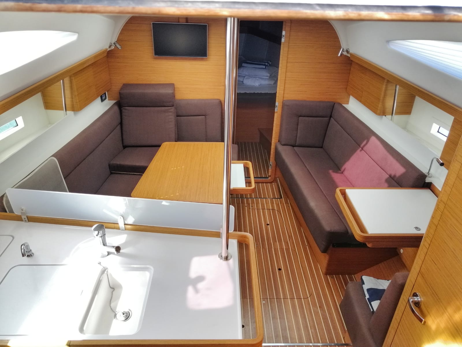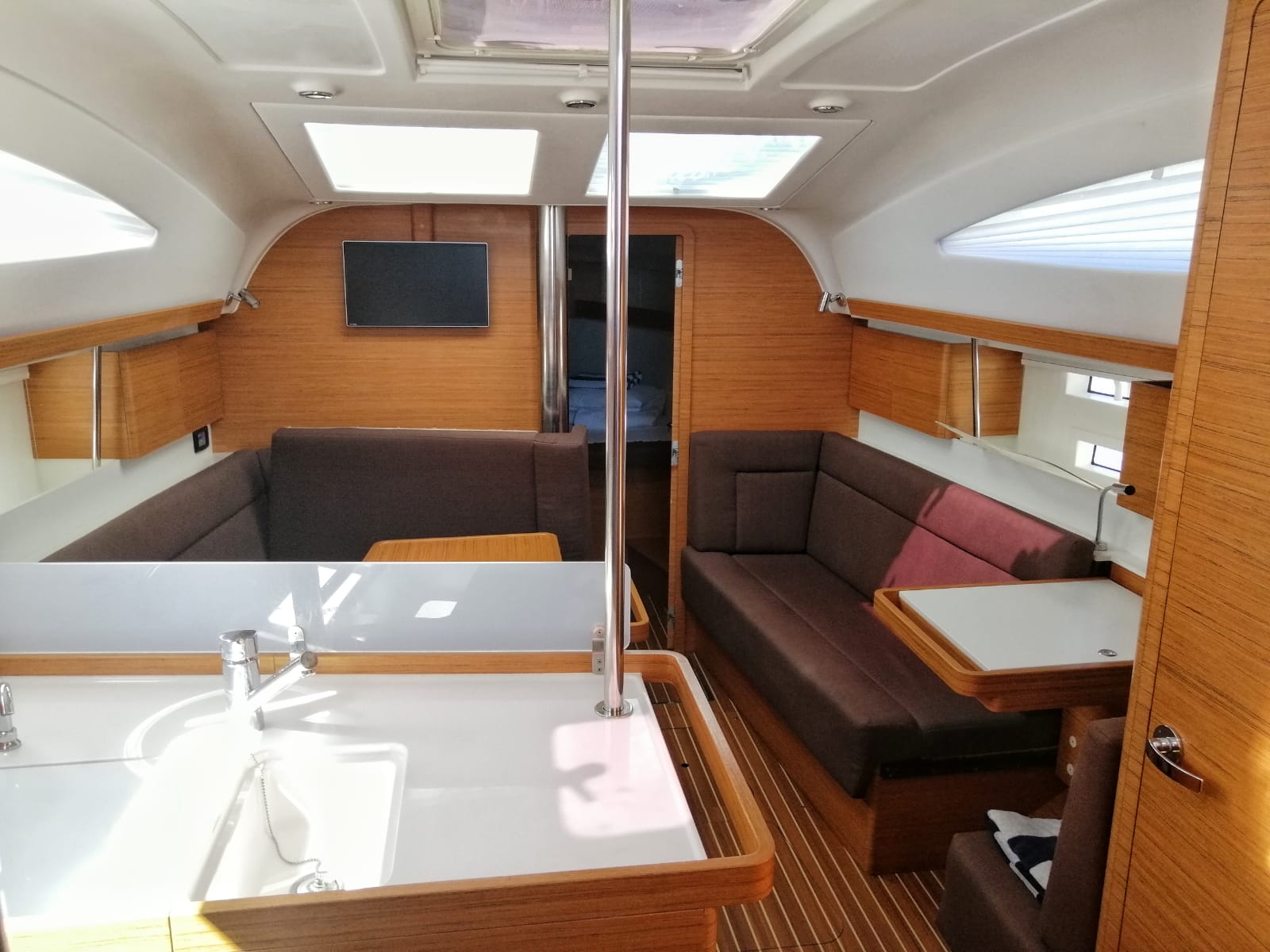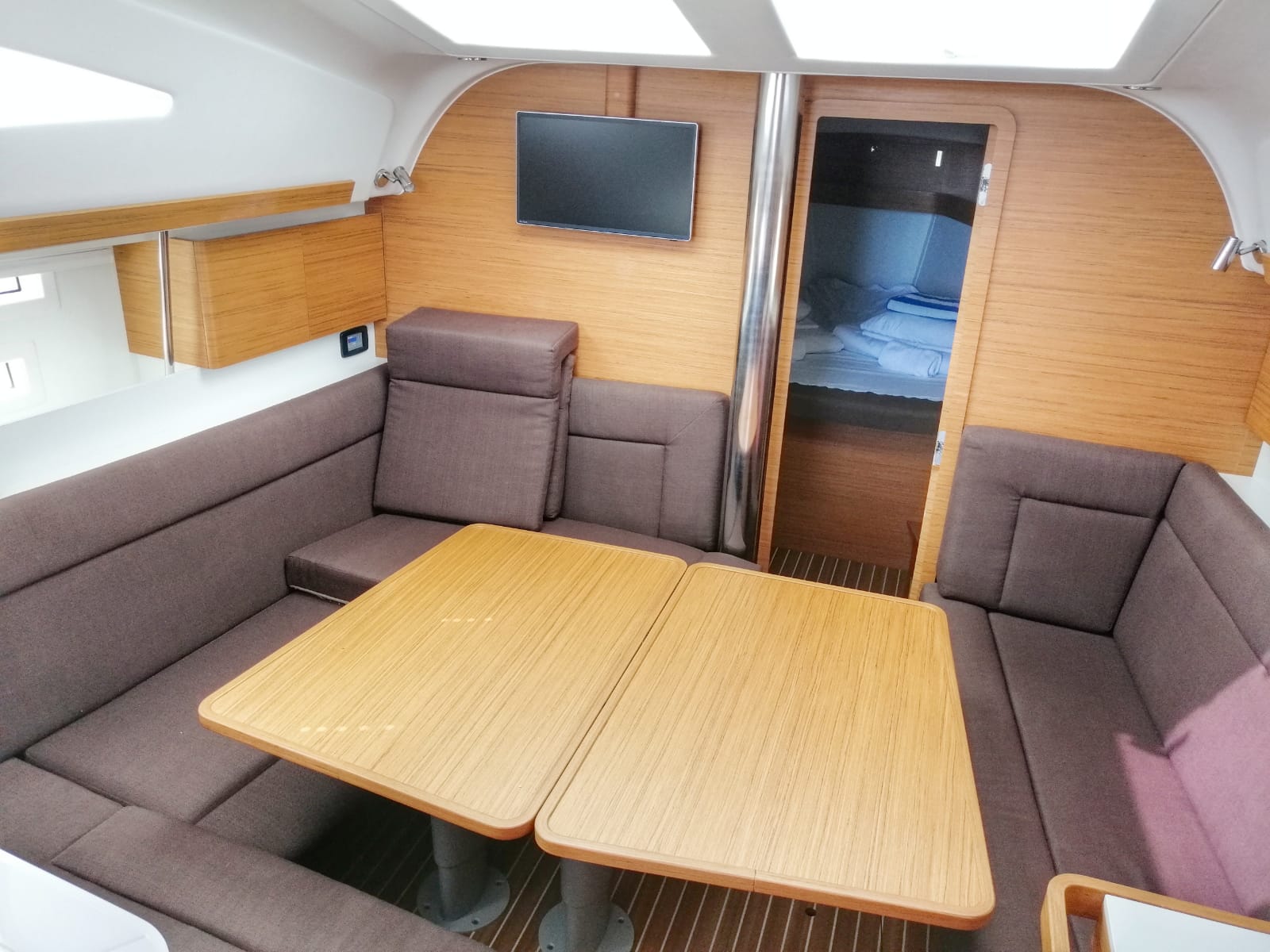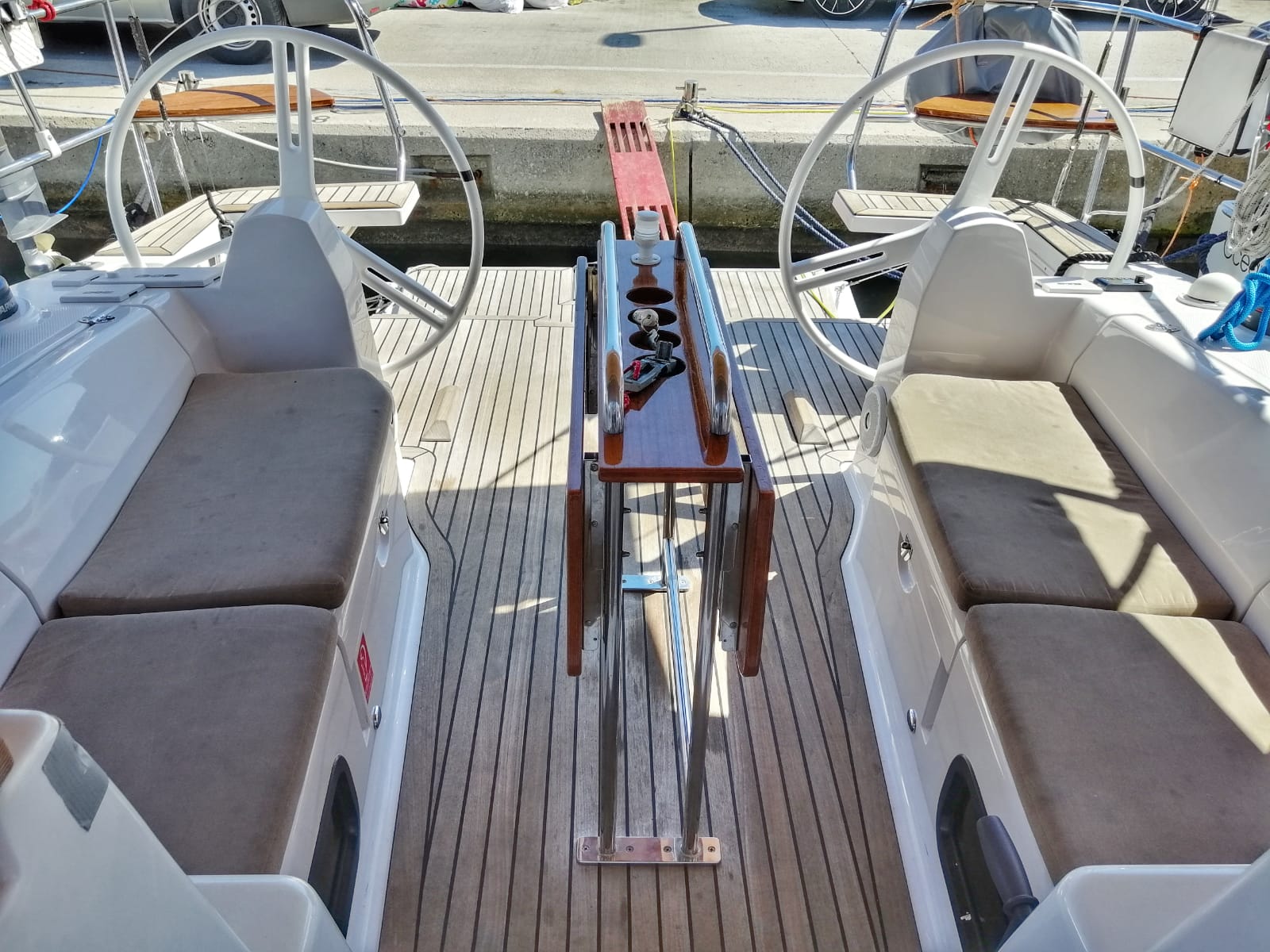 | Safety | Autopilot, Bordapotheke, Bordwerkzeug, Bugstrahlruder, elektr. Bilgepumpe, Feststoffschwimmwesten, Feueraxt, Feuerlöscher, Lifebelts, Nebelhorn, Notsignale, Radarreflektor, Taschenlampe, UKW-Funk mit AIS |
