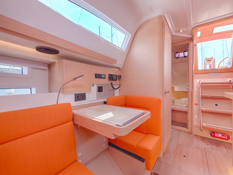 | Navigation | Echolot, Fernglas, GPS mit Kartenplotter im Cockpit, Hafenhandbücher, Kompass, Navigationsbesteck, Seekarten, Sumlog |