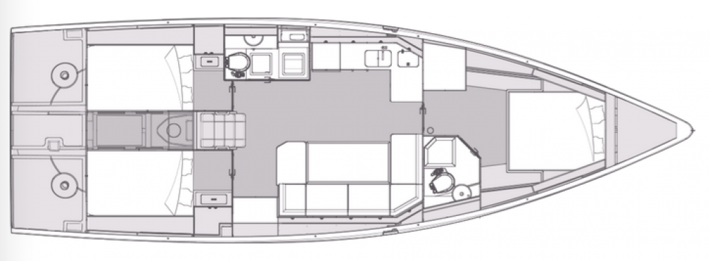 Outside Biminitop, Cockpitdusche, Cockpitlautsprecher, Cockpitpolster, Cockpittisch, elektr. Ankerwinsch, Gangway, Sprayhood, Teakdeck