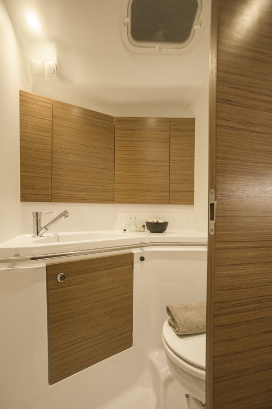 | Outside | 12 V-Anschluss, Badeplattform, Biminitop, Cockpitdusche warm/kalt, Cockpitlautsprecher, Cockpitpolster, Cockpittisch, Deckbeleuchtung, Delta-Anker, elektr. Ankerwinsch, Faltpropeller, Fender, Festmacherleinen, Sprayhood, Teak auf Badeplattform, Teak im Cockpit, Treibanker, Wantenschneider, Windex |