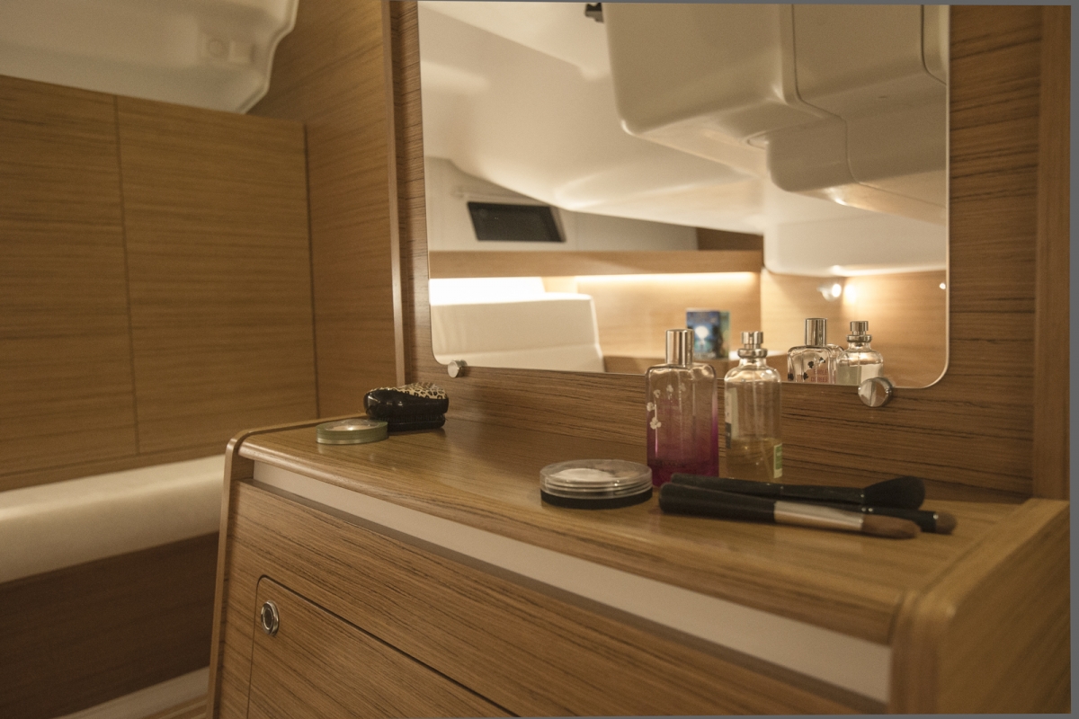 | Safety | Autopilot, Bootsmannstuhl, Bordapotheke, Bugstrahlruder, Feststoffschwimmwesten, Feuerlöscher, Flaggen, Lifebelts, Nebelhorn, Notpinne, Radarreflektor, Taschenlampe, UKW-Funk m. DSC, Zweitanker |