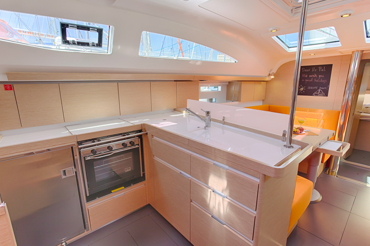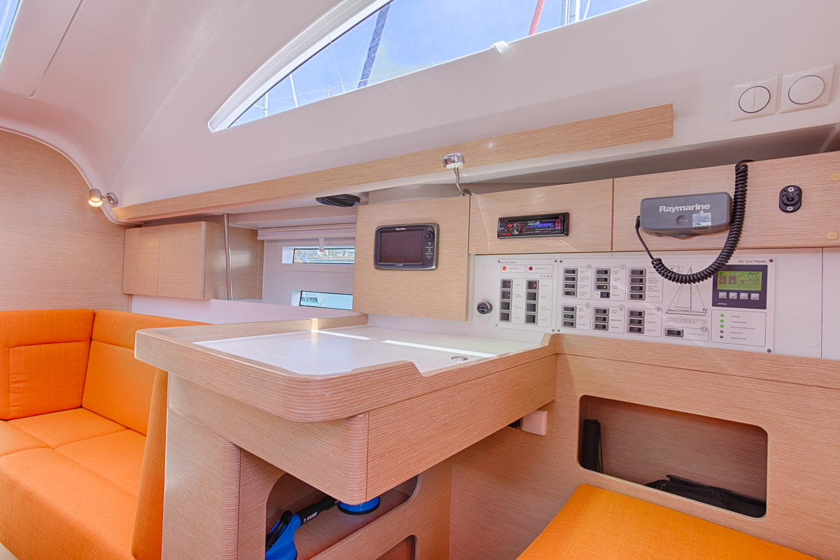 | Safety | AIS Empfänger, Autopilot, Bootsmannstuhl, Bordapotheke, Bordwerkzeug, Bugstrahlruder, elektr. Bilgepumpe, Epirb, Feststoffschwimmwesten, Feuerlöscher, Flaggen, Handbilgepumpe, Kinderschwimmwesten, Lifebelts, Motor-Ersatzteile, Nebelhorn, Notpinne, Notsignale, Radarreflektor, Rettungsinsel, Rettungskragen, Sicherheitsgurt, Sicherheitsnetz, Taschenlampe, UKW-Funk, Zweitanker |
