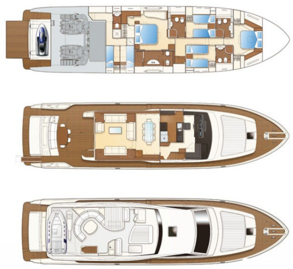 | Inside | Eiswürfelmaschine, Generator, Hi-Fi System, Klimaanlage (ohne Landstrombedarf), Mikrowelle, TV + DVD, Watermaker |