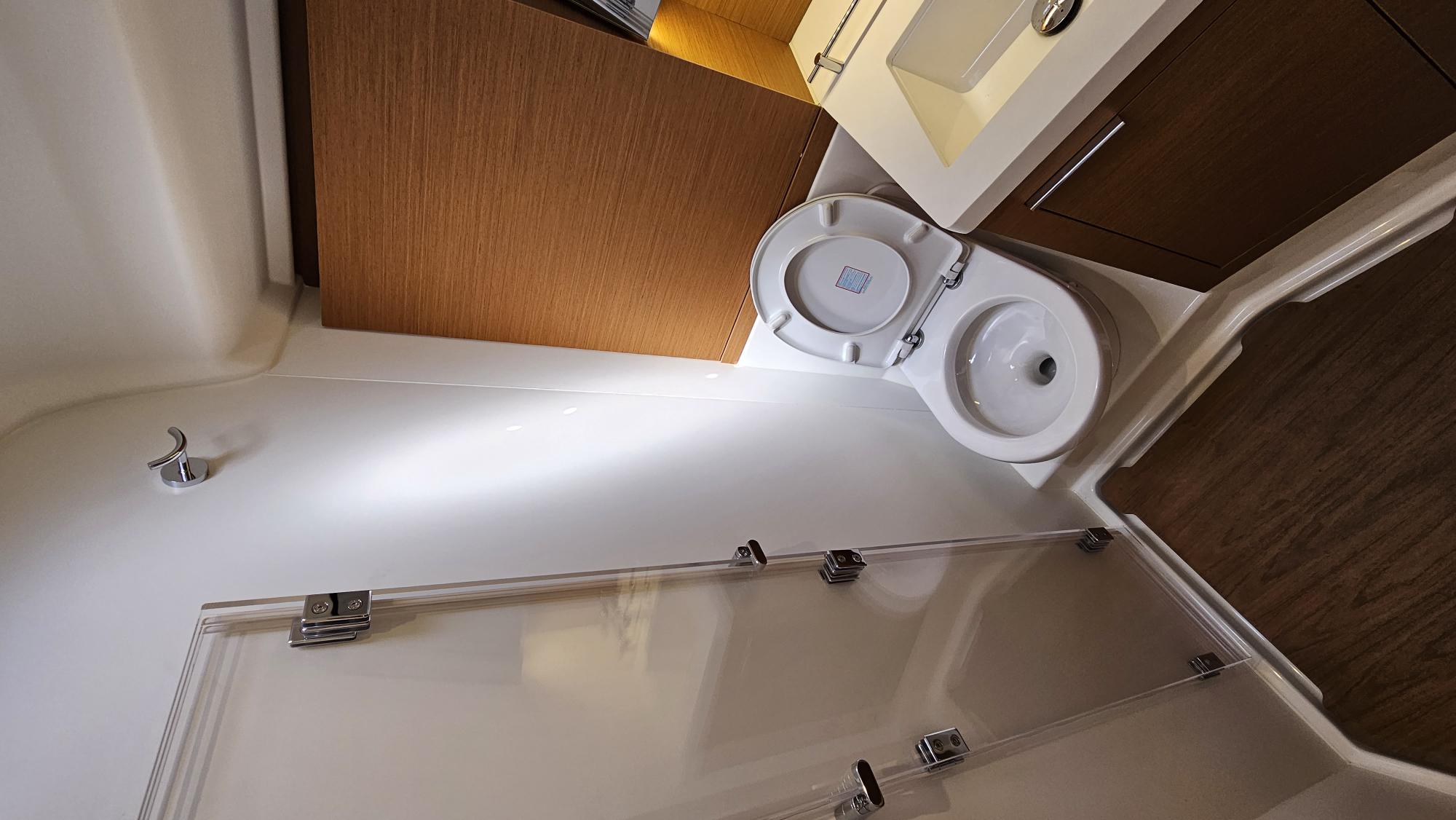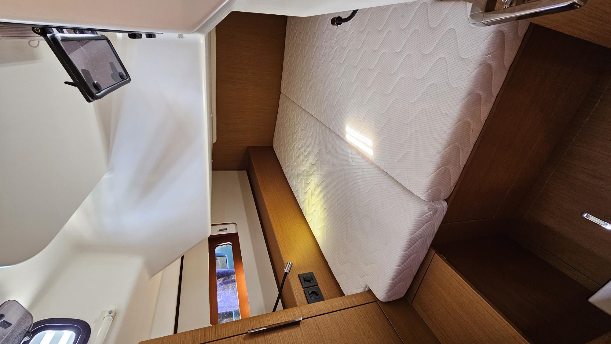 | Outside | 220 V-Landanschluss, Abnehmbarer Cockpittisch, Anker mit Kette, Badeplattform elektr., Biminitop, Cockpitdusche warm/kalt, Cockpitlautsprecher, Cockpitpolster, elektr. Ankerwinsch, elektr. Großwinsch, Gangway, Sprayhood, Tendergarage |