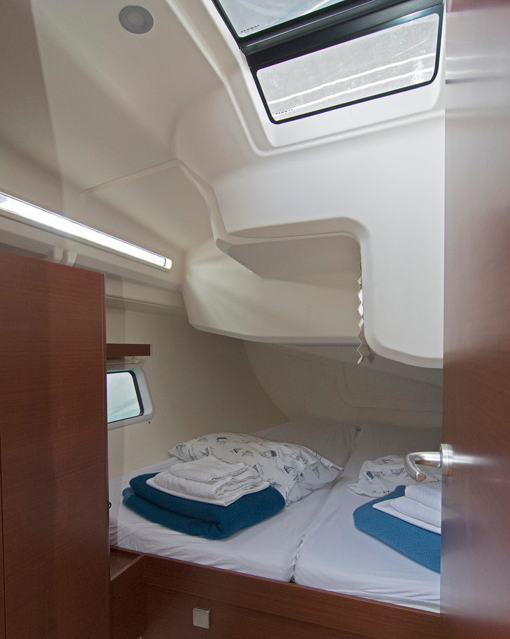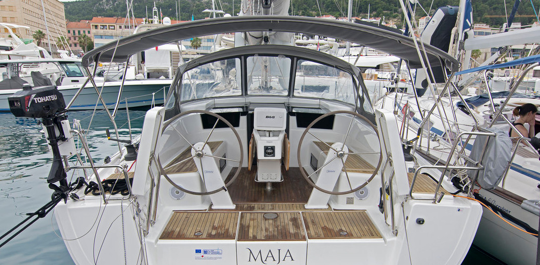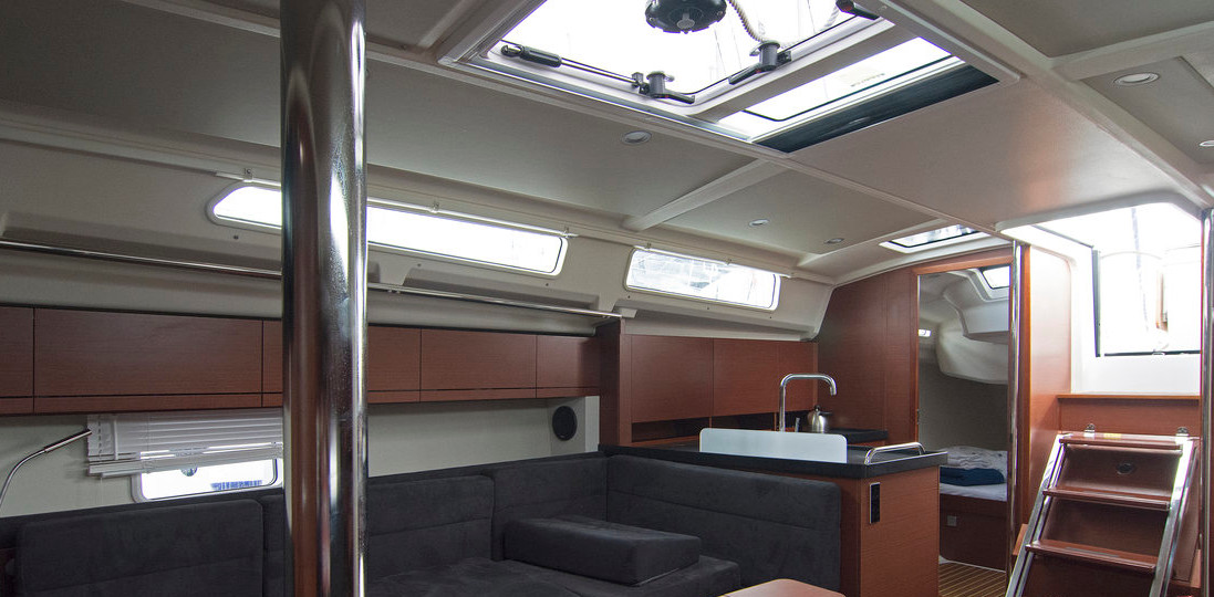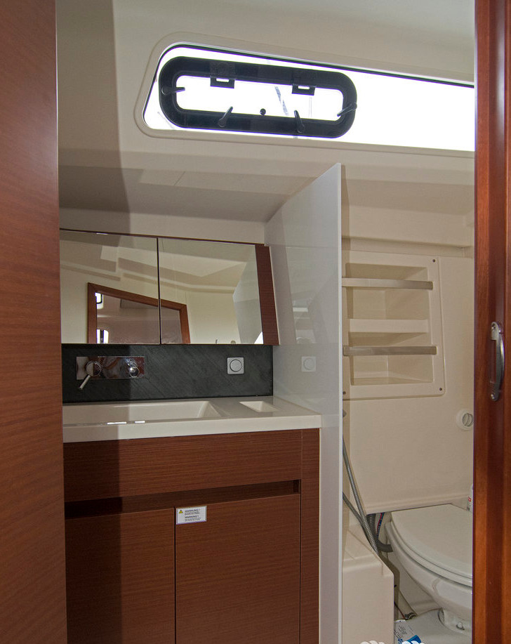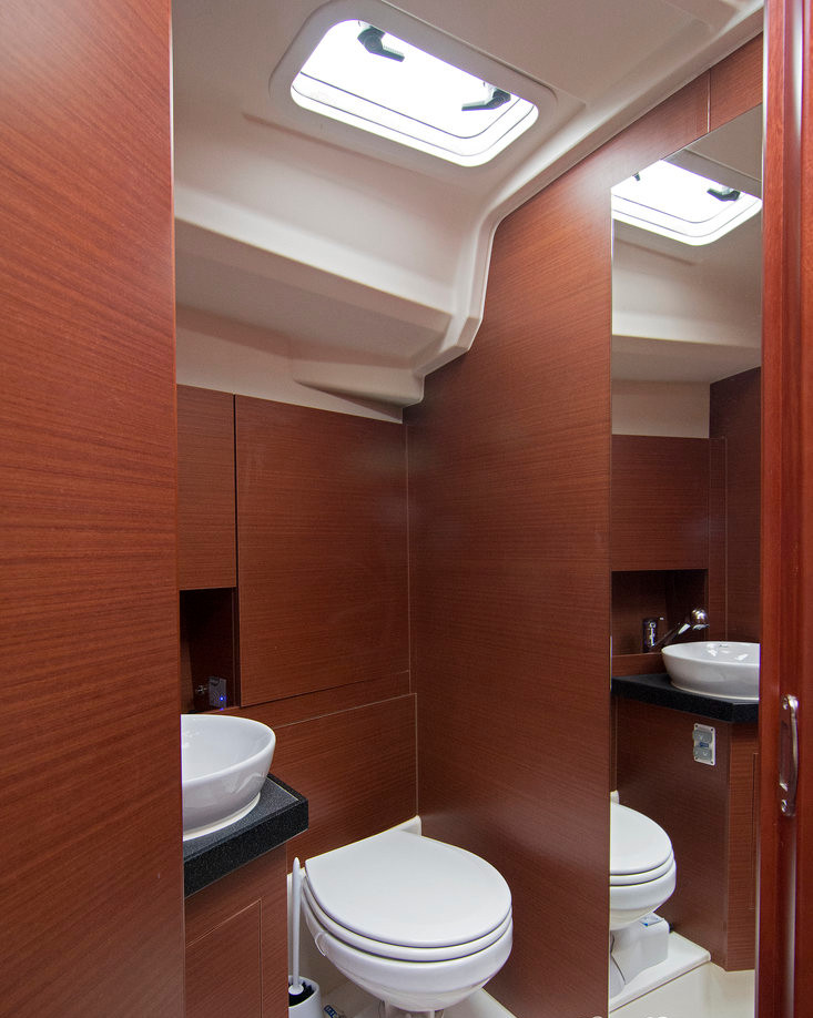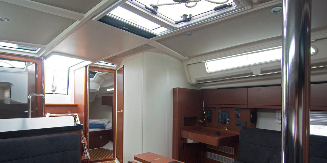 | Navigation | GPS mit Kartenplotter im Cockpit, Hafenhandbücher, Kartenplotter im Salon, Kompass, Seekarten, Tridata (Log, Echolot, Windm.) |
