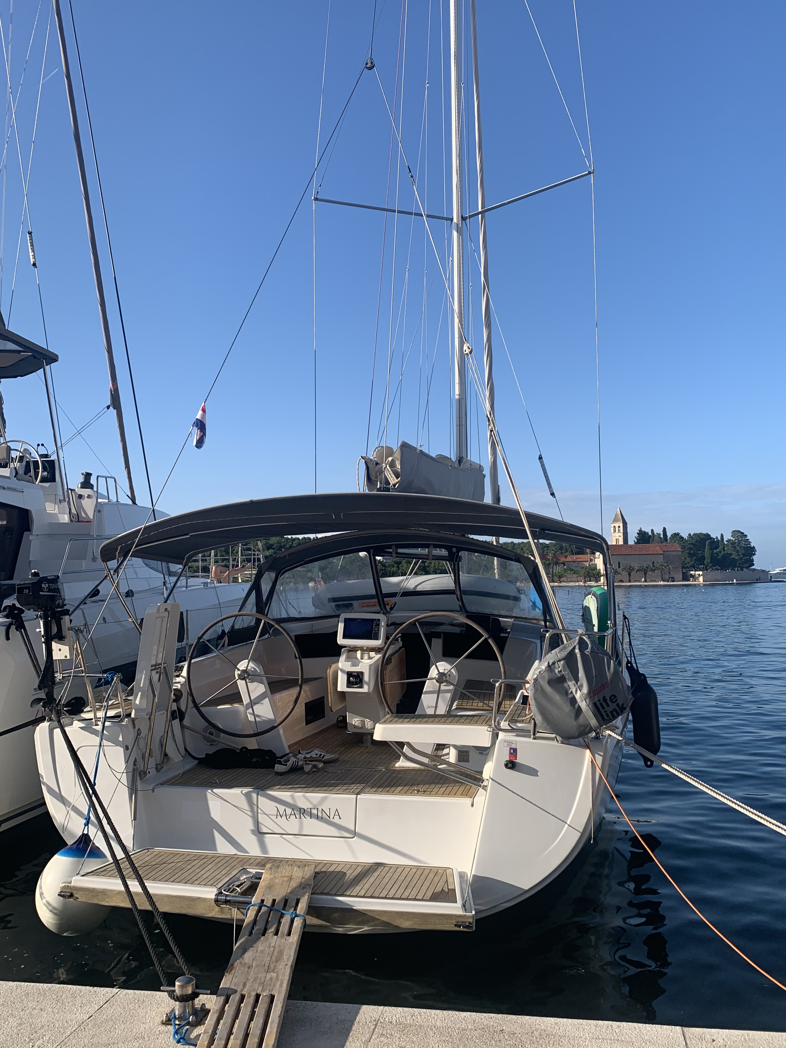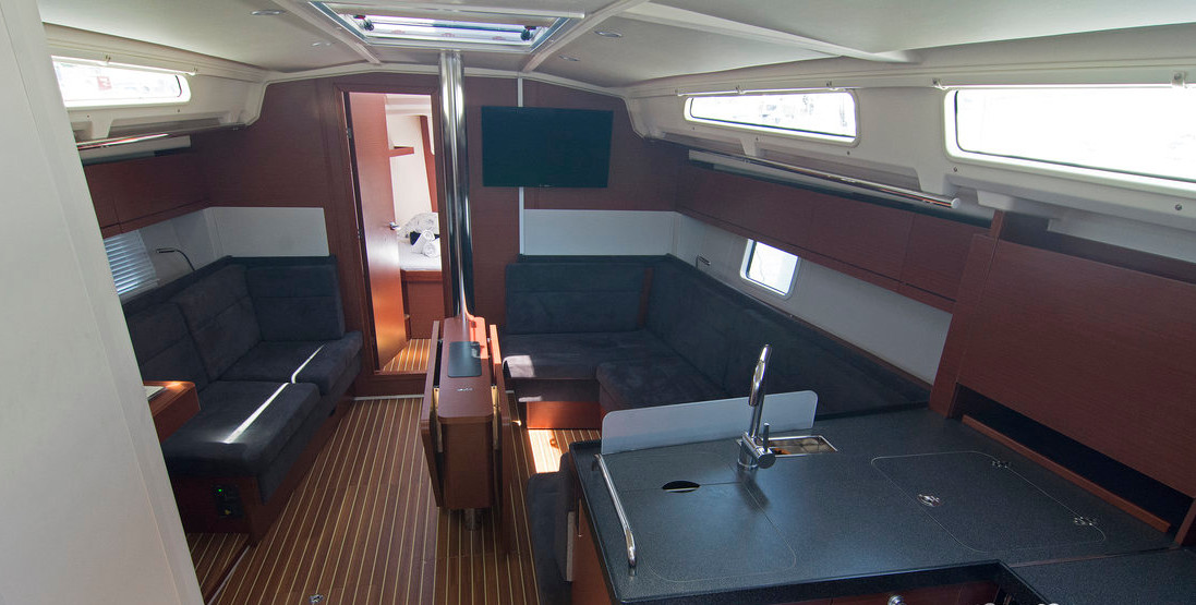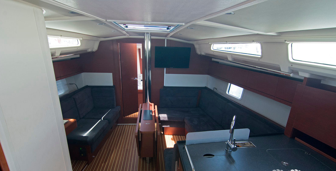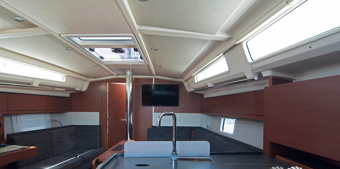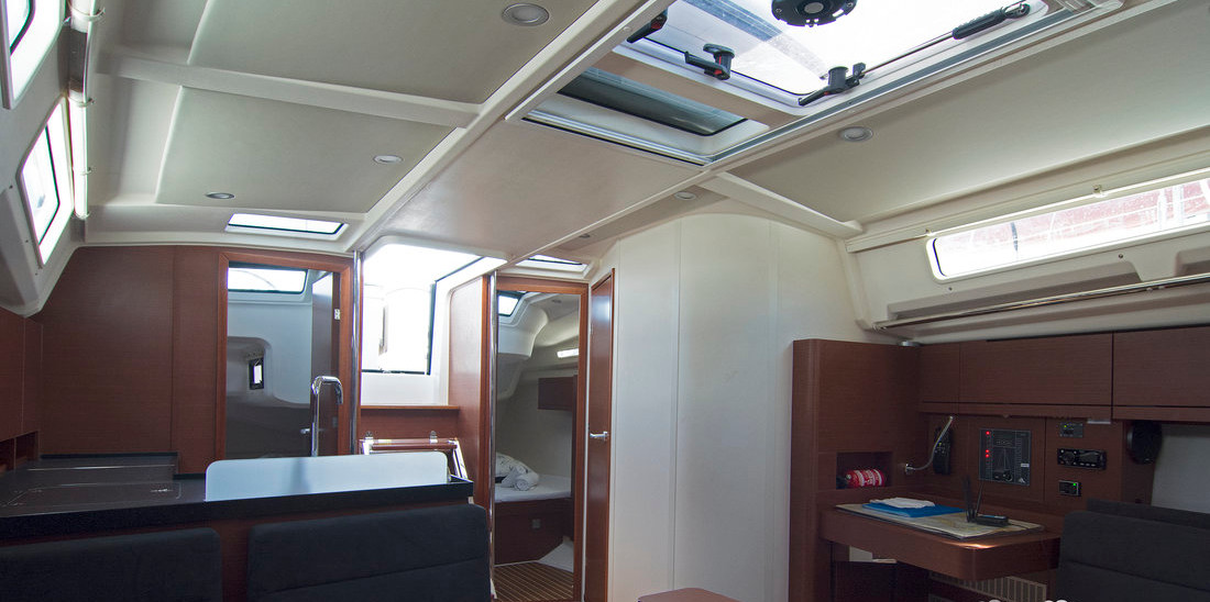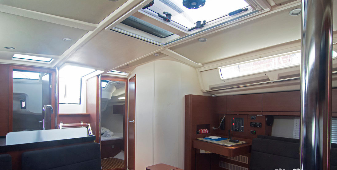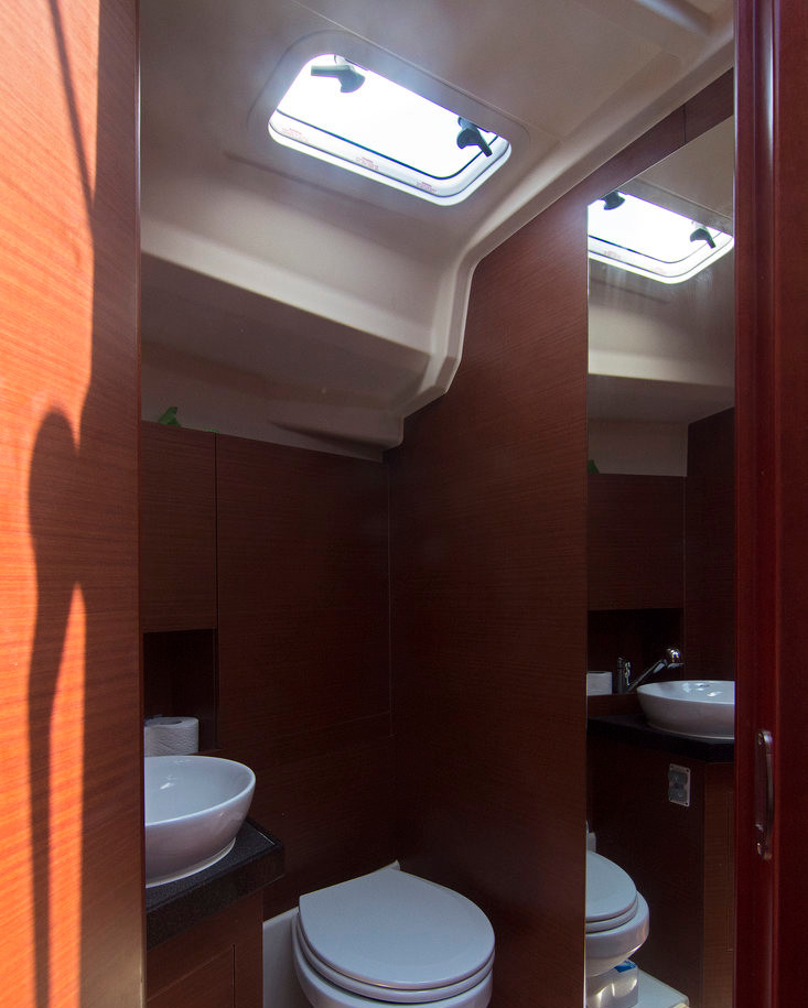 | Navigation | GPS mit Kartenplotter im Cockpit, Hafenhandbücher, Kartenplotter im Salon, Kompass, Seekarten, Tridata (Log, Echolot, Windm.) |