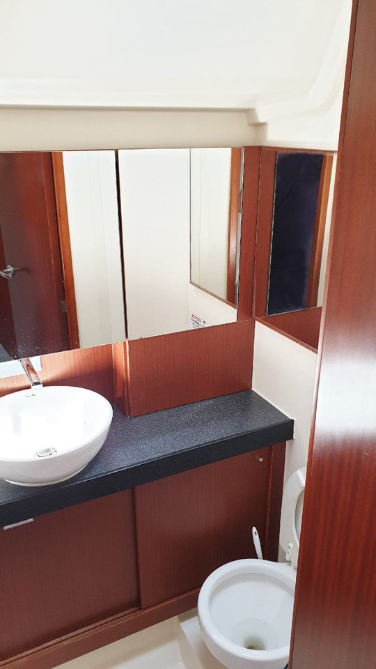 | Inside | 12V Steckdose, Backofen, Gasherd, Inverter 12V/220V, Kühlschrank, Ladegerät, Luftpumpe für Beiboot, Pantryausstattung, Radio mit CD und USB, USB Steckdosen in den Kabinen, Warmwasser |
