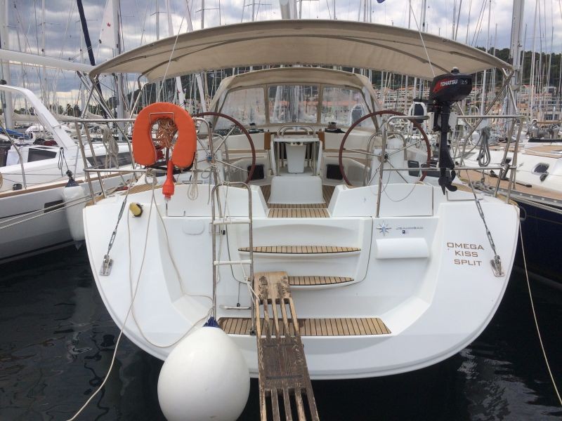 | Outside | 220 V-Landanschluss, Anker mit Kette, Biminitop, Cockpitdusche, Cockpittisch, elektr. Ankerwinsch, Fender, Festmacherleinen, Sprayhood, Teak im Cockpit, Windex |