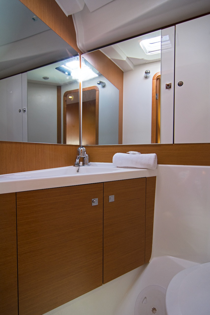 | Navigation | Echolot, GPS mit Kartenplotter im Salon, Hafenhandbücher, Handpeilkompass, Kompass, Seekarten, Sumlog, Windmesser |
