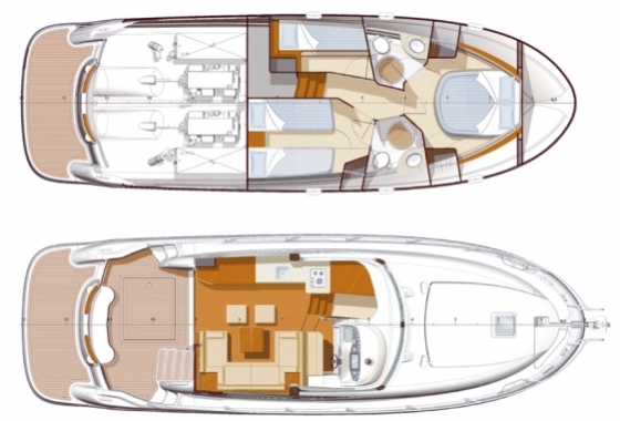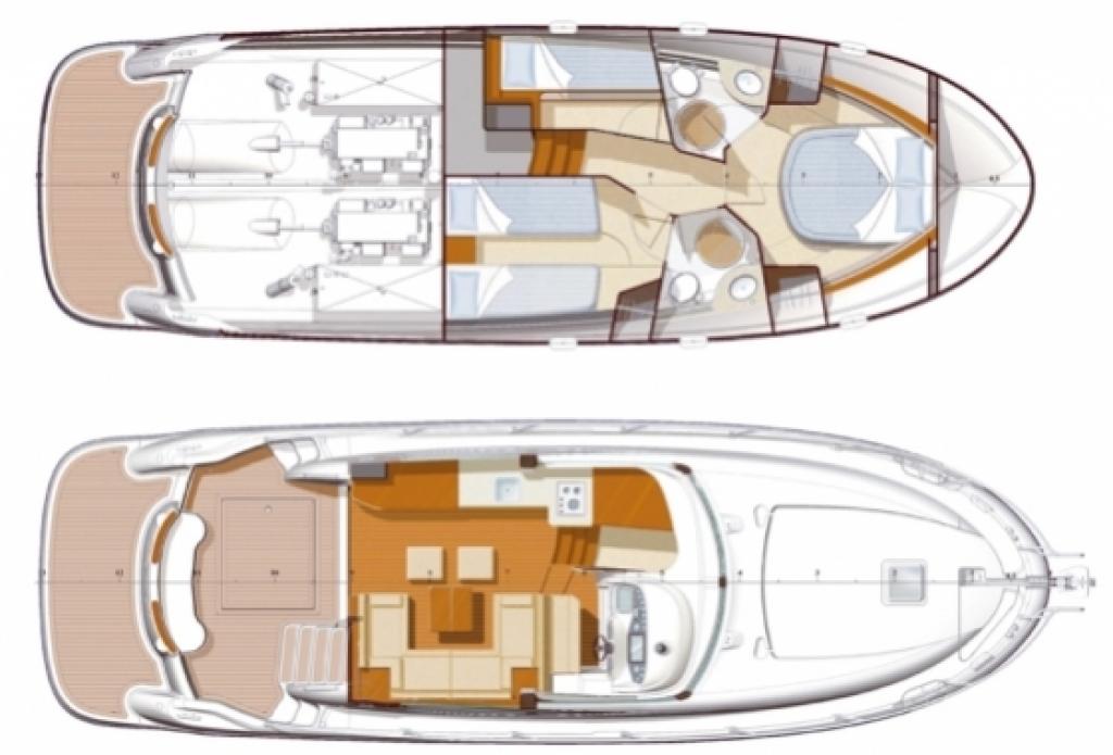 | Outside | 220 V-Landanschluss, Anker mit Kette, Badeplattform, Cockpitdusche, Cockpittisch, elektr. Ankerwinsch, Heckdusche, hydraul. Gangway, Sonnensegel |