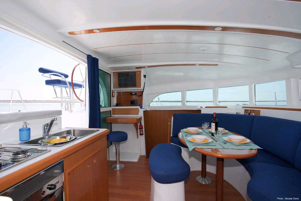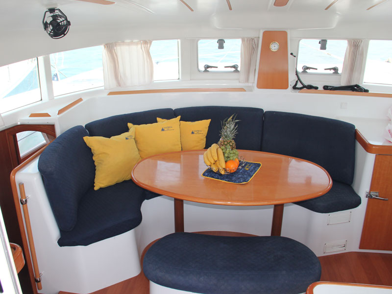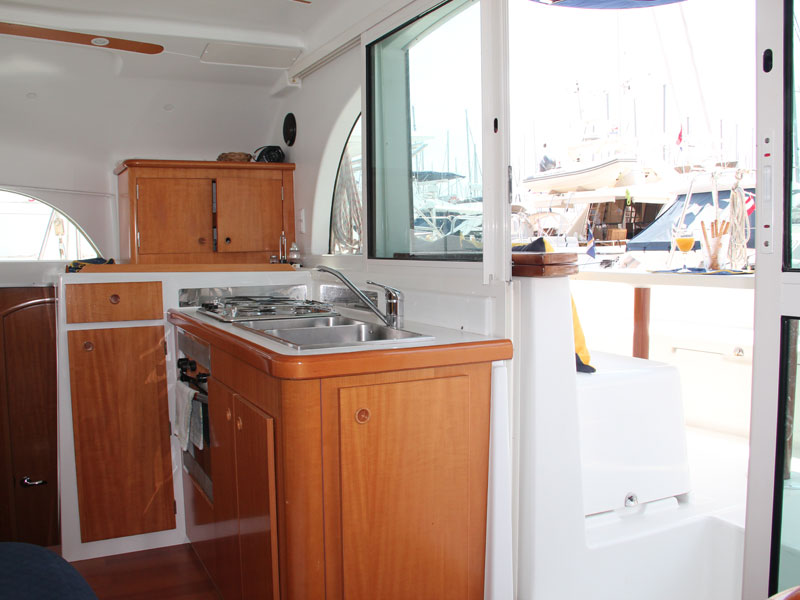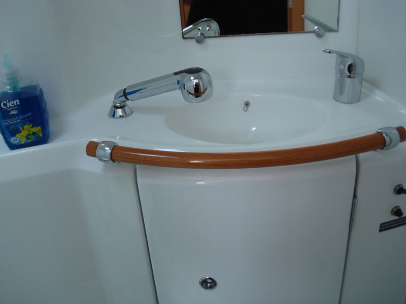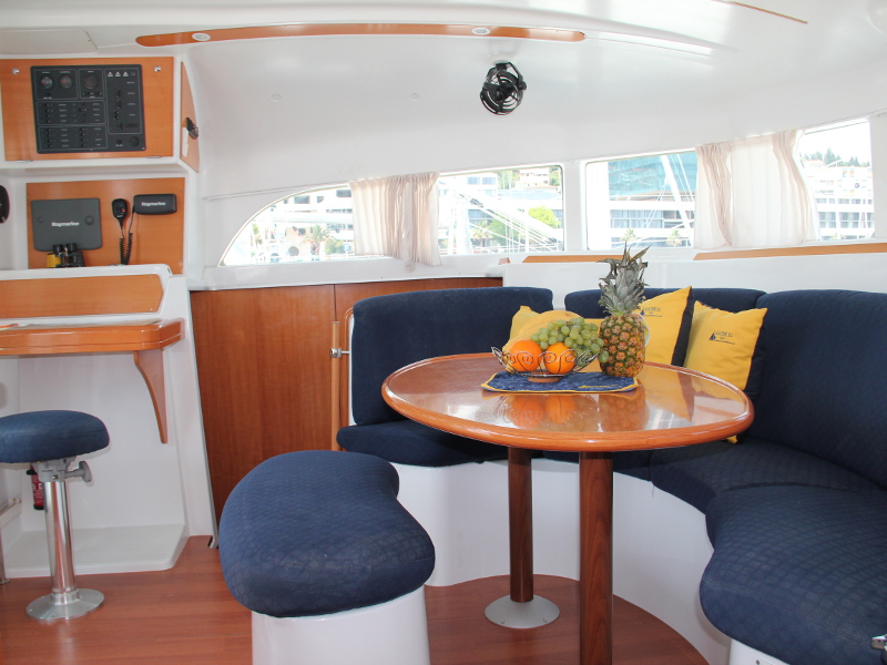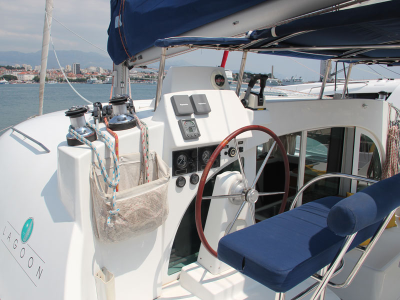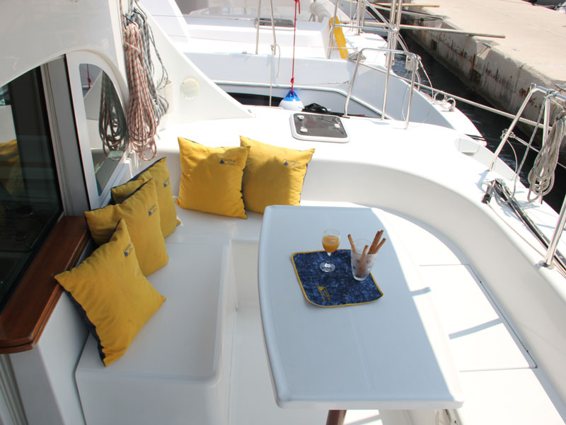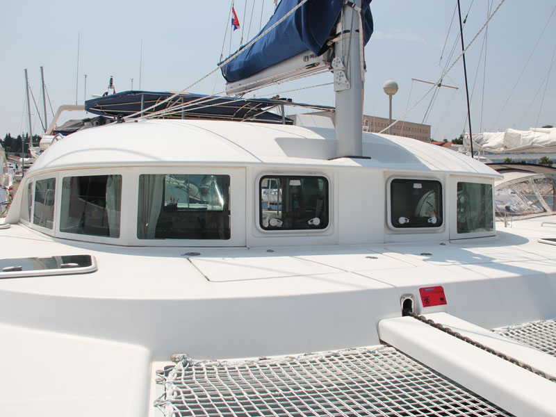 | Outside | 220 V-Landanschluss, Anker mit Kette, Badeleiter, Bootshaken, Cockpitlautsprecher, Cockpittisch, Deckbürste, elektr. Ankerwinsch, Fender, Festmacherleinen, Gangway, Hardtop, Heckdusche, Kunststoff-Eimer (Pütz), Wasserschlauch, Windex, Winschen |