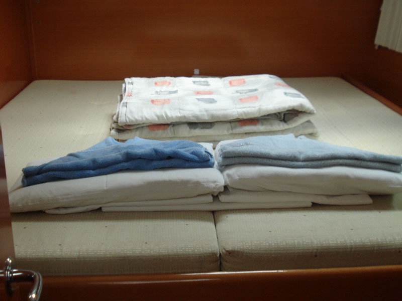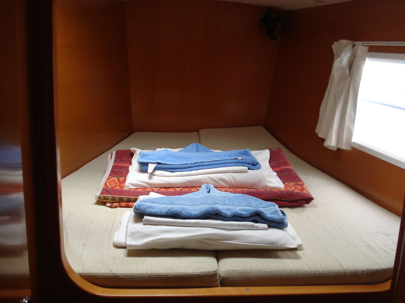 | Safety | Autopilot, Bootsmannstuhl, Bordapotheke, Bordwerkzeug, elektr. Bilgepumpe, Feststoffschwimmwesten, Feuerlöscher, Flaggen, Lifebelts, Nebelhorn, Notpinne, Notsignale, Radarreflektor, Rettungskragen, Rettungswesten, Sicherheitsgurt, Sicherheitsnetz, Taschenlampe, UKW-Funk, Zweitanker |