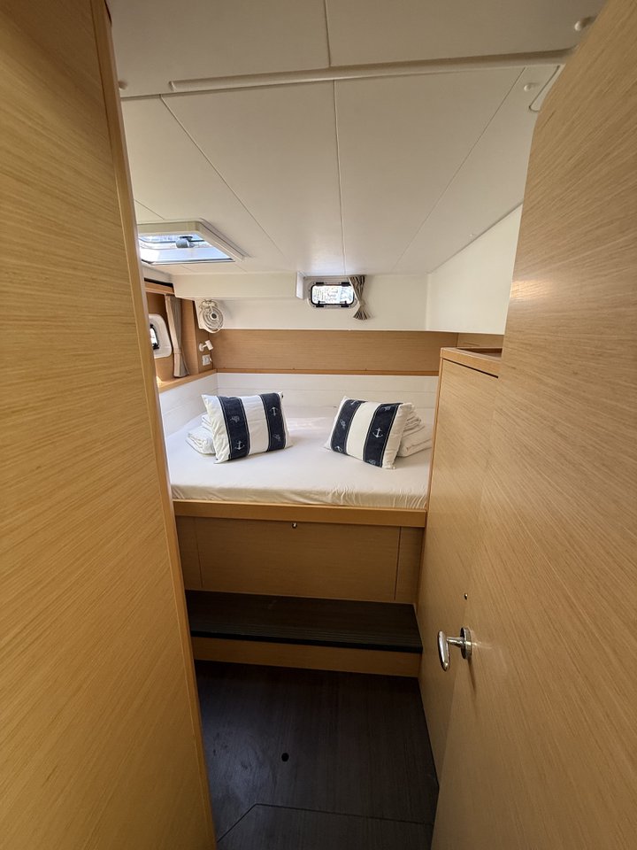 | Inside | Borduhr, Klimaanlage (Landstrom), Kühlschrank mit Gefrierfach, Ladegerät, Luftpumpe für Beiboot, Pantryausstattung, Radio, Salontisch absenkbar, USB Steckdose, Ventilatoren in Salon und Kabinen, Warmwasser |