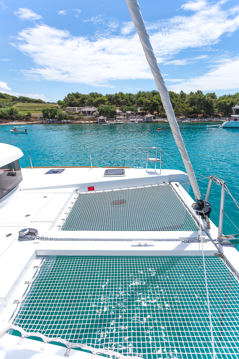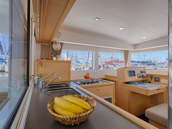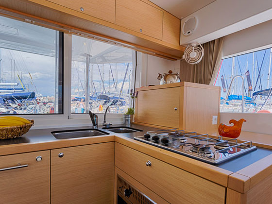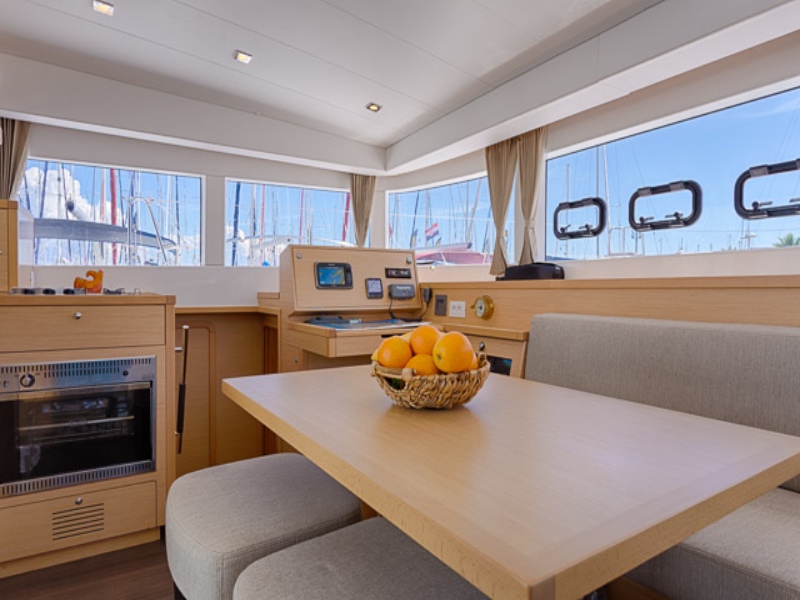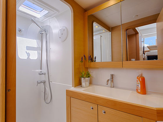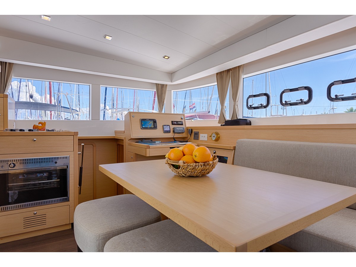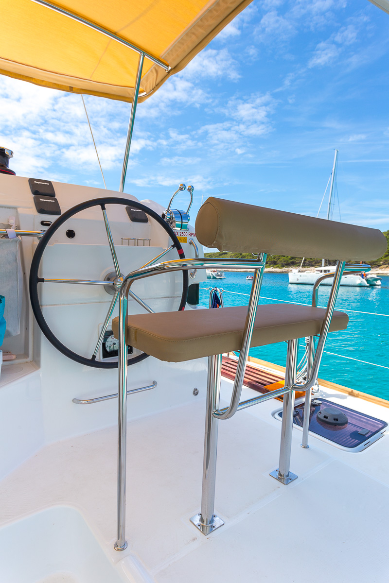 | Outside | 220 V-Landanschluss, Anker mit Kette, Cockpitlautsprecher, Cockpitpolster, Cockpittisch, elektr. Ankerwinsch, Gangway, Hardtop, Schnorchelausrüstung, Vorhängeschloss, Windex |