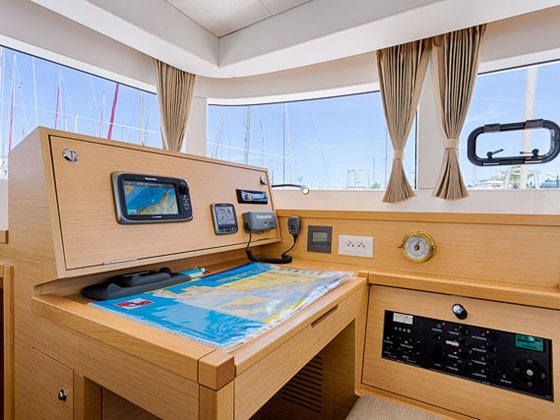 | Navigation | Echolot, Fernglas, GPS mit Kartenplotter im Salon, Hafenhandbücher, Navigationsbesteck, Seekarten, Sumlog |
