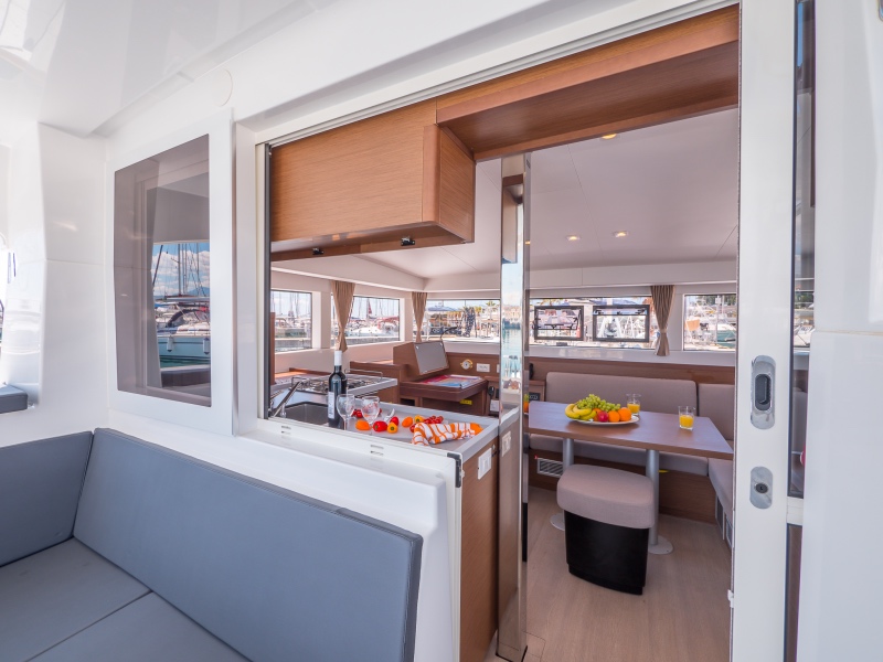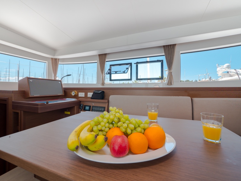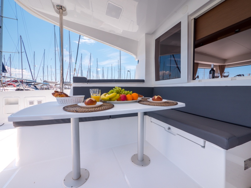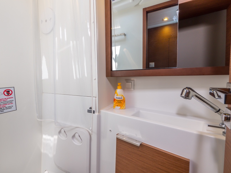| Outside | 220 V-Landanschluss, Anker mit Kette, Biminitop, Cockpitdusche, Cockpitlautsprecher, Cockpitpolster, Cockpittisch, elektr. Ankerwinsch, Gangway, Solaranlage, Sprayhood, Vorhängeschloss, Windex |