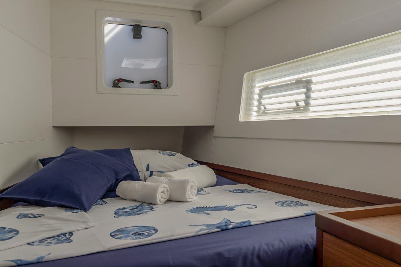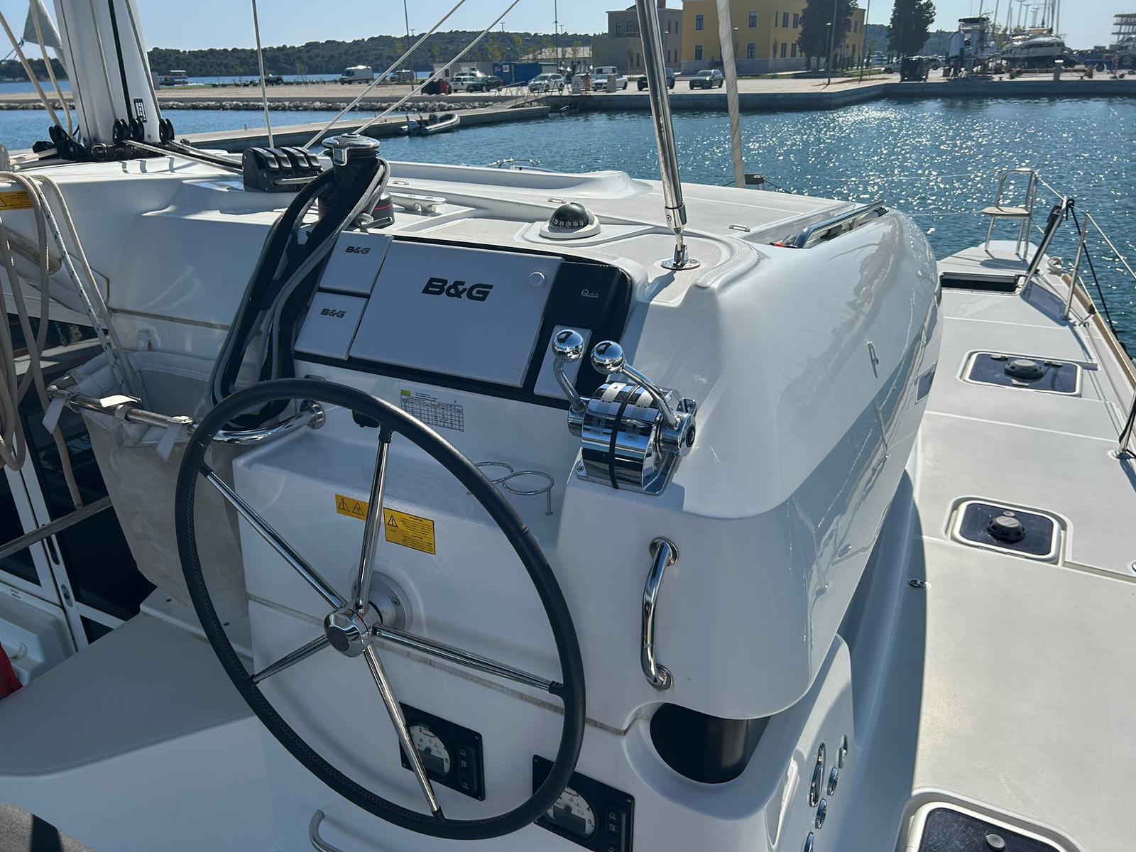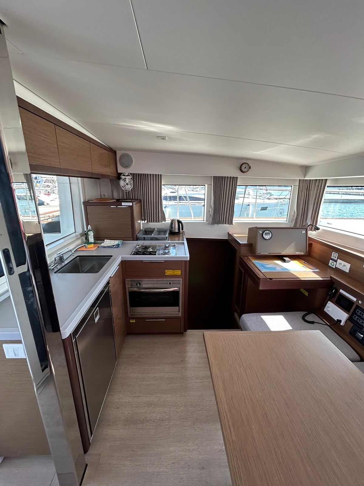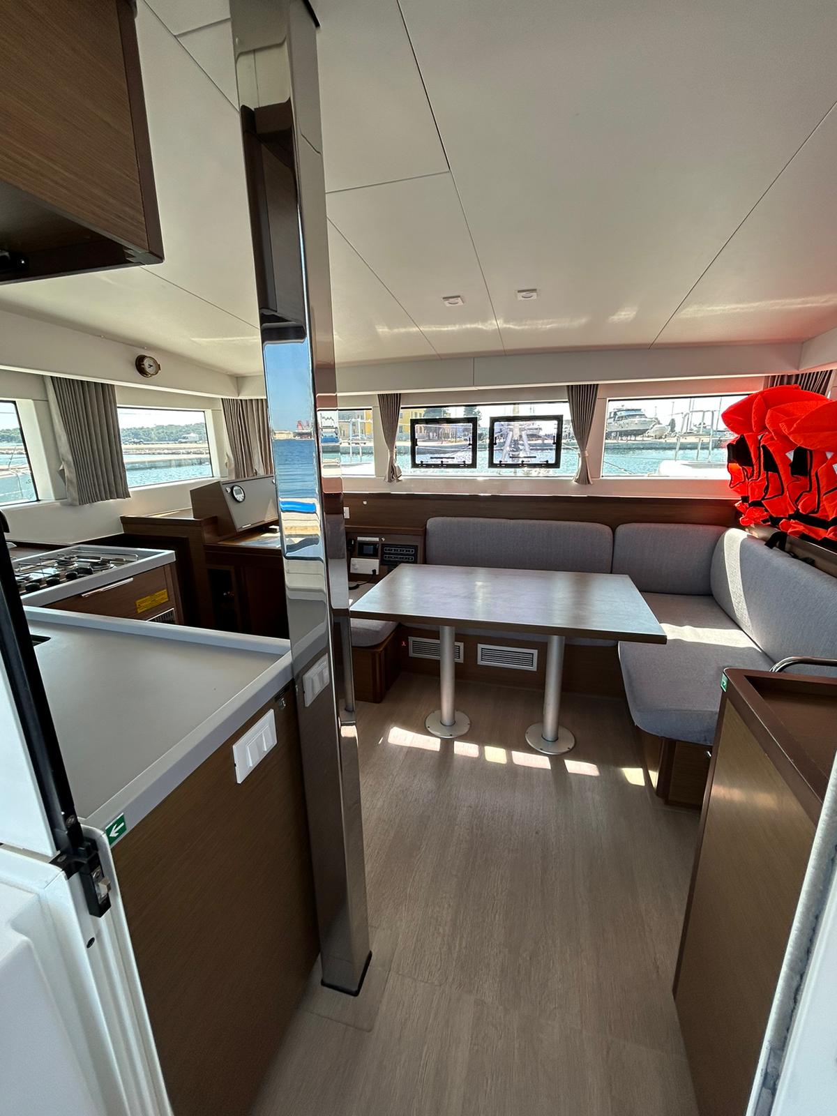 | Inside | 220V Steckdosen, Eiswürfelmaschine, Fäkalientank, Fön, Gefrierschrank, Generator, Heizung, Klimaanlage (ohne Landstrombedarf), Kühlschrank, Ladegerät, Moskitonetze, Pantryausstattung, Radio, Salontisch absenkbar, USB Steckdosen in den Kabinen, Ventilatoren in Salon und Kabinen, Warmwasser, WC (elektr.) |