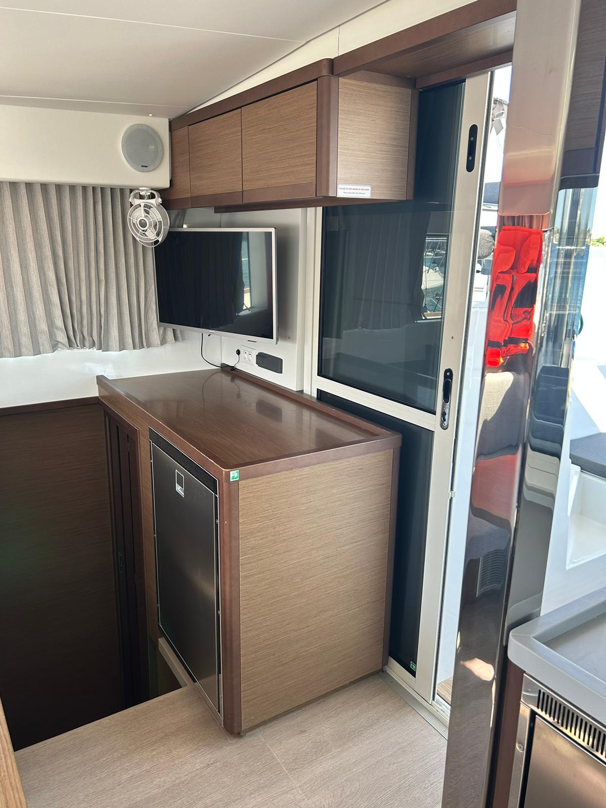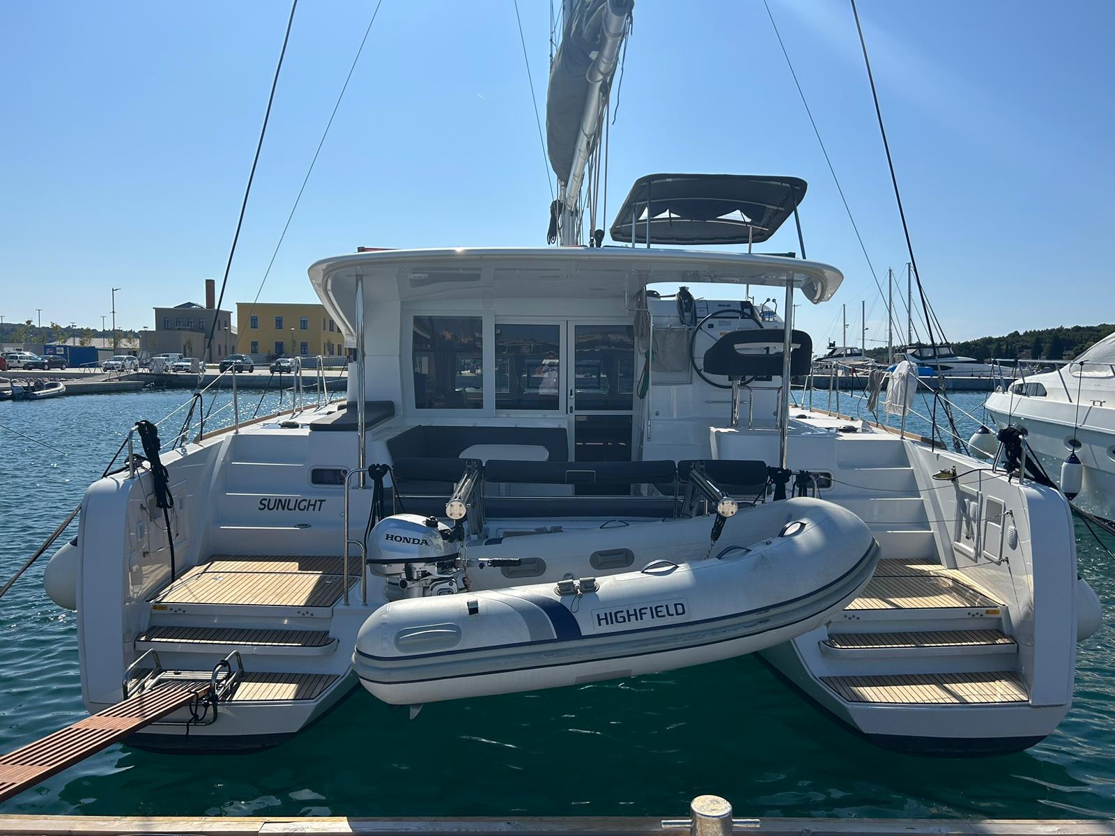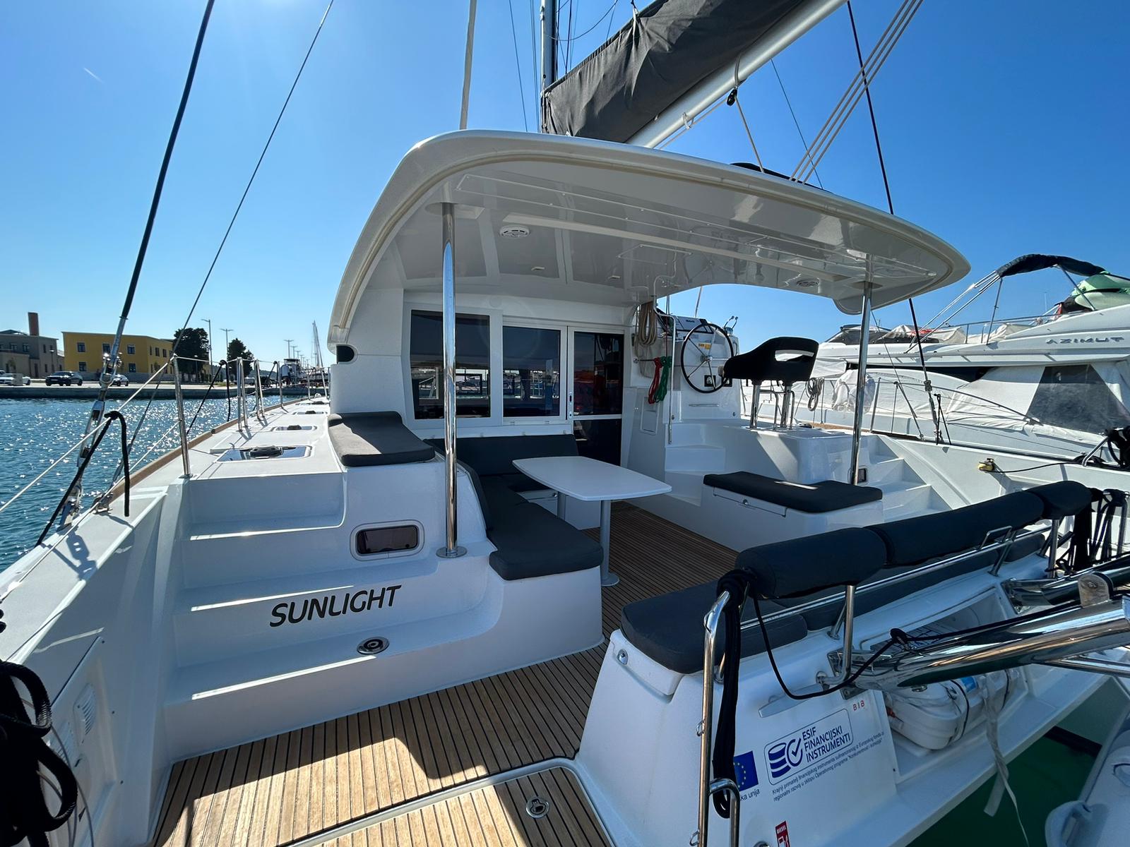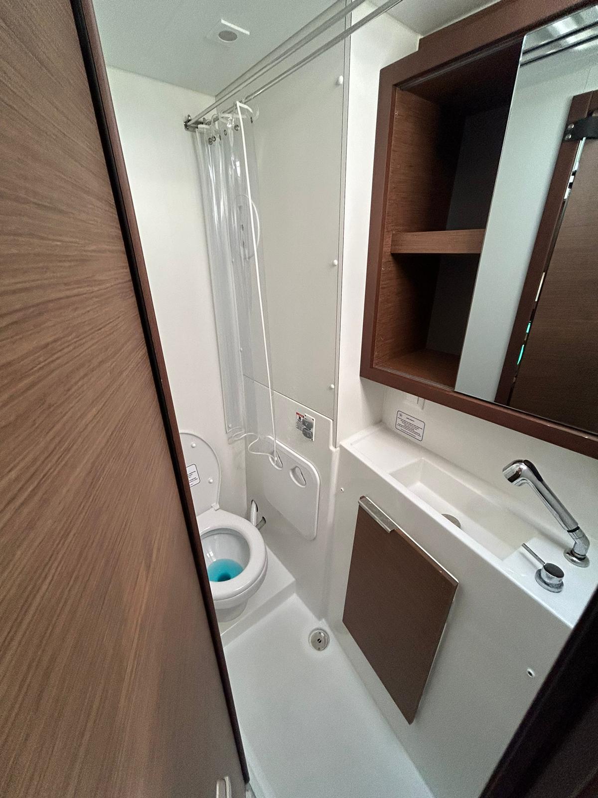 | Inside | 220V Steckdosen, Eiswürfelmaschine, Fäkalientank, Fön, Gefrierschrank, Generator, Heizung, Klimaanlage (ohne Landstrombedarf), Kühlschrank, Ladegerät, Moskitonetze, Pantryausstattung, Radio, Salontisch absenkbar, USB Steckdosen in den Kabinen, Ventilatoren in Salon und Kabinen, Warmwasser, WC (elektr.) |