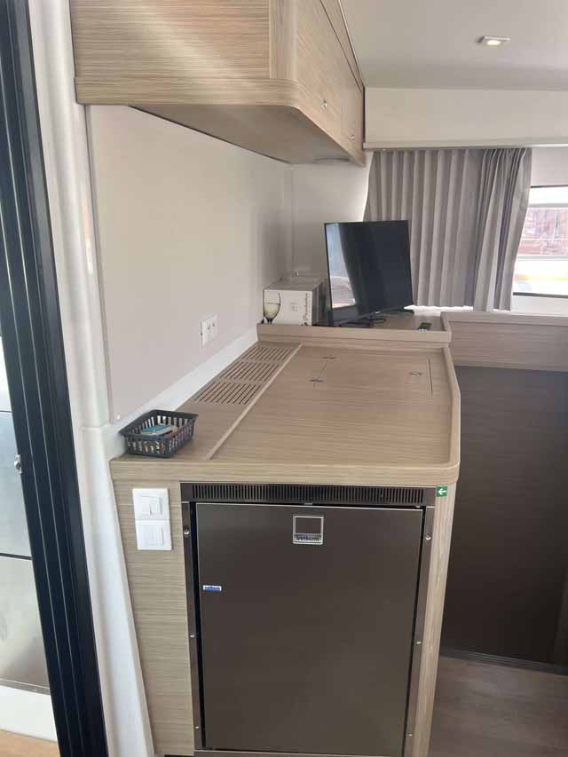 2. Kühlschrank, Borduhr, FUSION Sound System, Generator, Heizung, Inverter 12V/220V, Kaffeemaschine, Klimaanlage (ohne Landstrombedarf), Kühlschrank, Ladegerät, Luftpumpe für Beiboot, Mikrowelle, Pantryausstattung, Radio, USB Steckdose, Warmwasser |