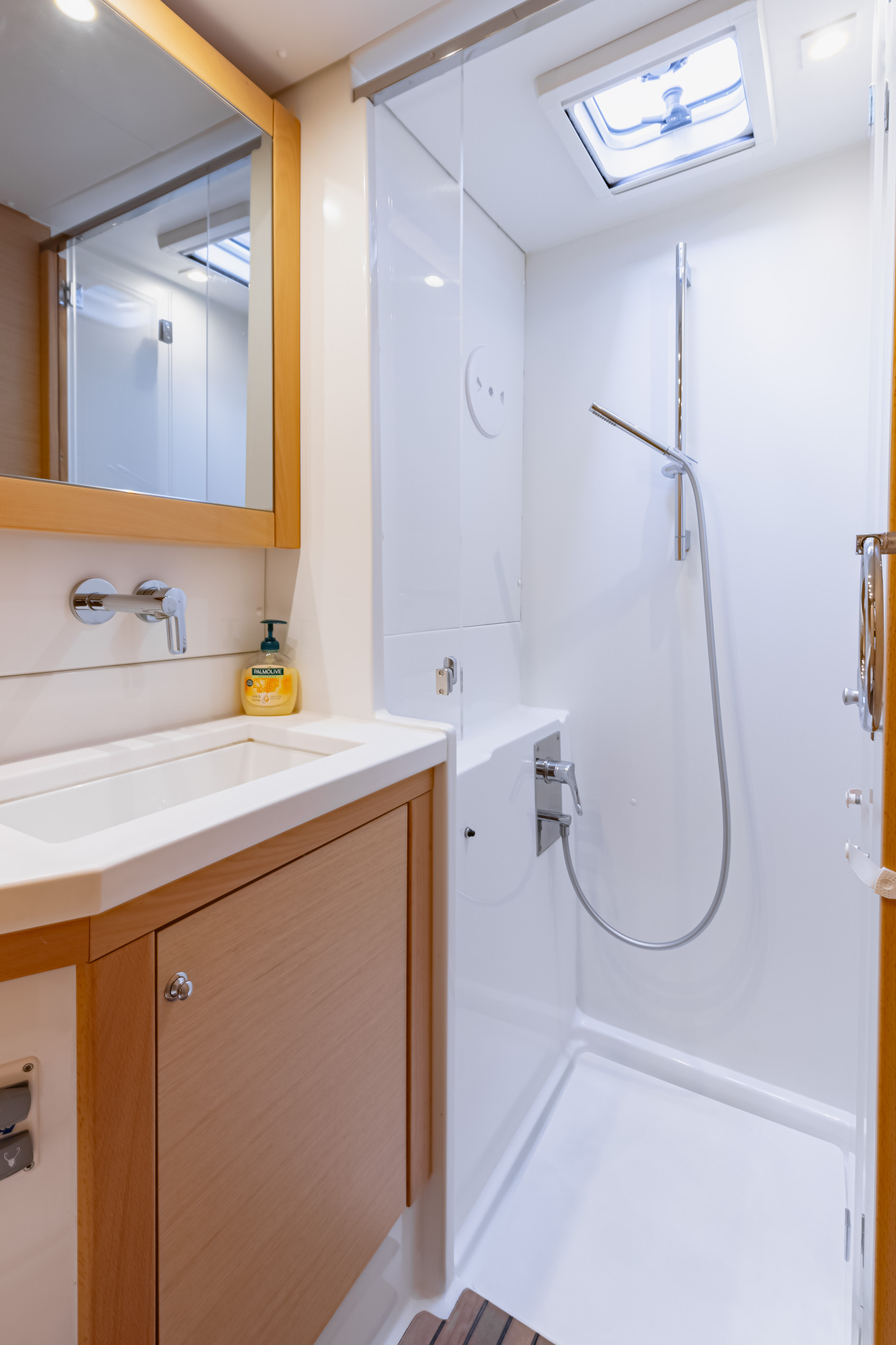 | Outside | 220 V-Landanschluss, Biminitop, Cockpitdusche, Cockpitlautsprecher, Cockpitpolster, Cockpittisch, elektr. Ankerwinsch, Gangway, Sprayhood, Teak im Cockpit, Unterwasserbeleuchtung |