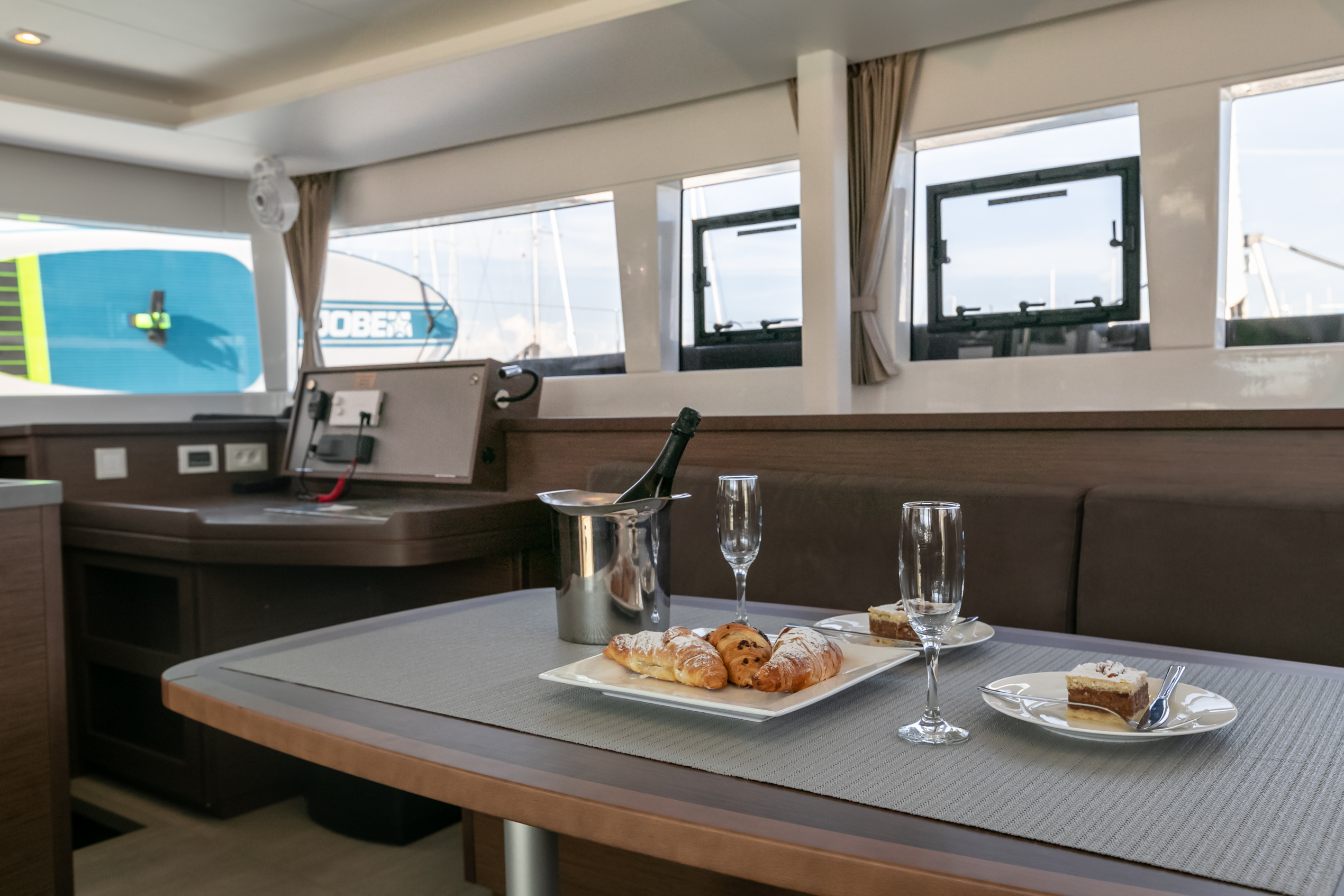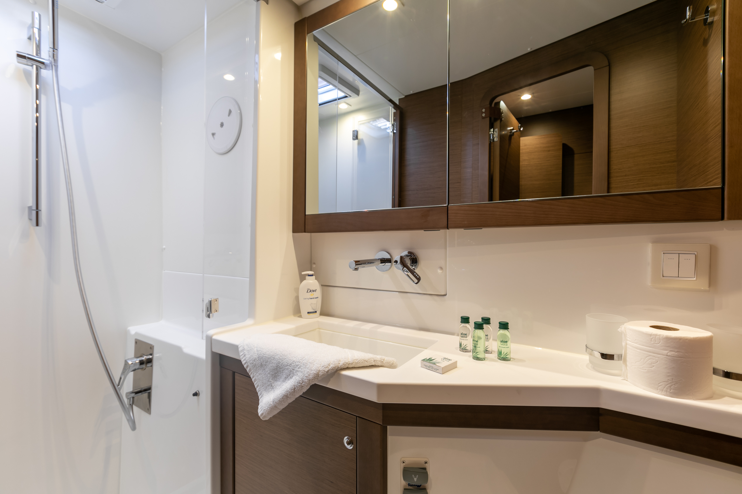 | Inside | Backofen, Fäkalientank, Gasherd, Generator, Geschirrspüler, Heizung, Kaffeemaschine, Klimaanlage (ohne Landstrombedarf), Kühlschrank, Ladegerät, Mikrowelle, Pantryausstattung, Radio mit CD und MP3, Trockner, TV + DVD, Warmwasser, Watermaker, WC (elektr.) |