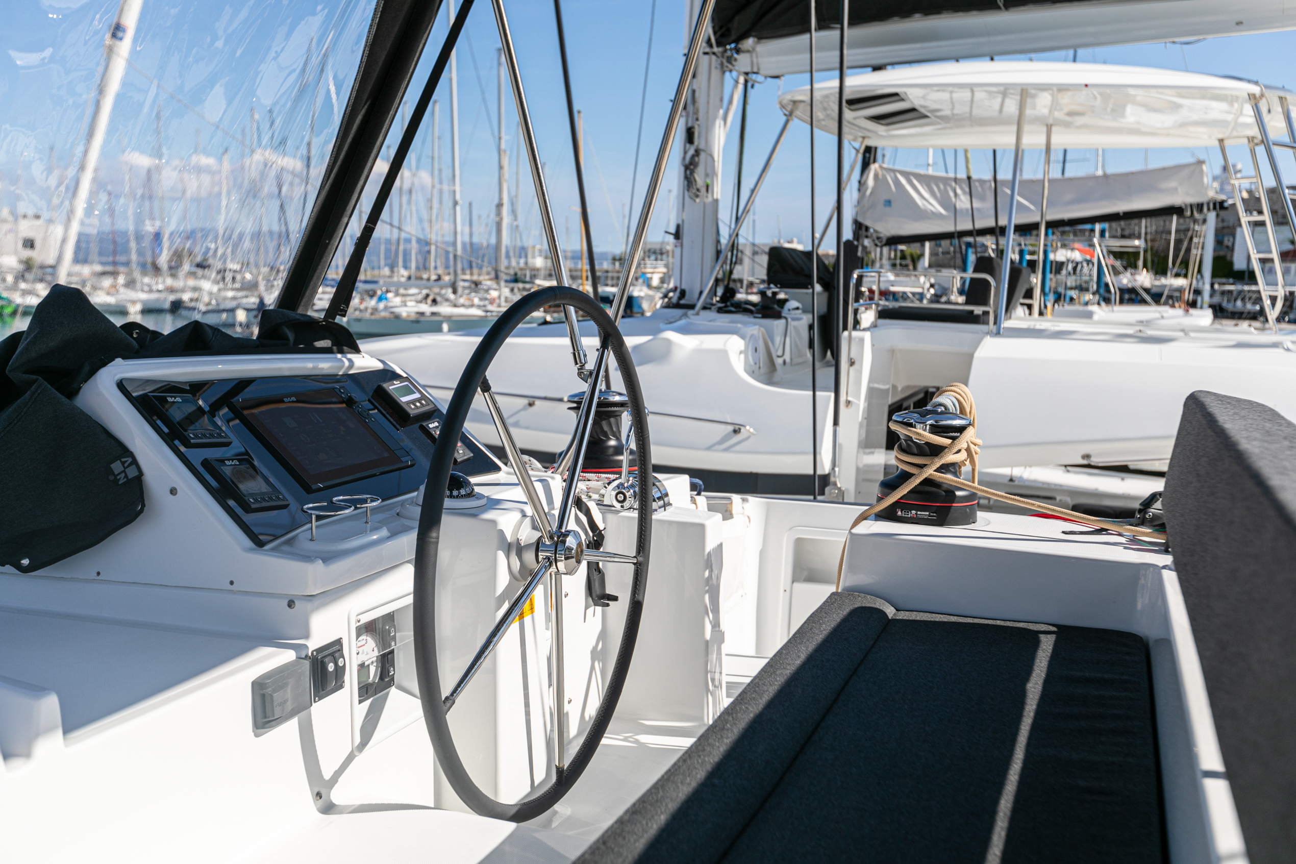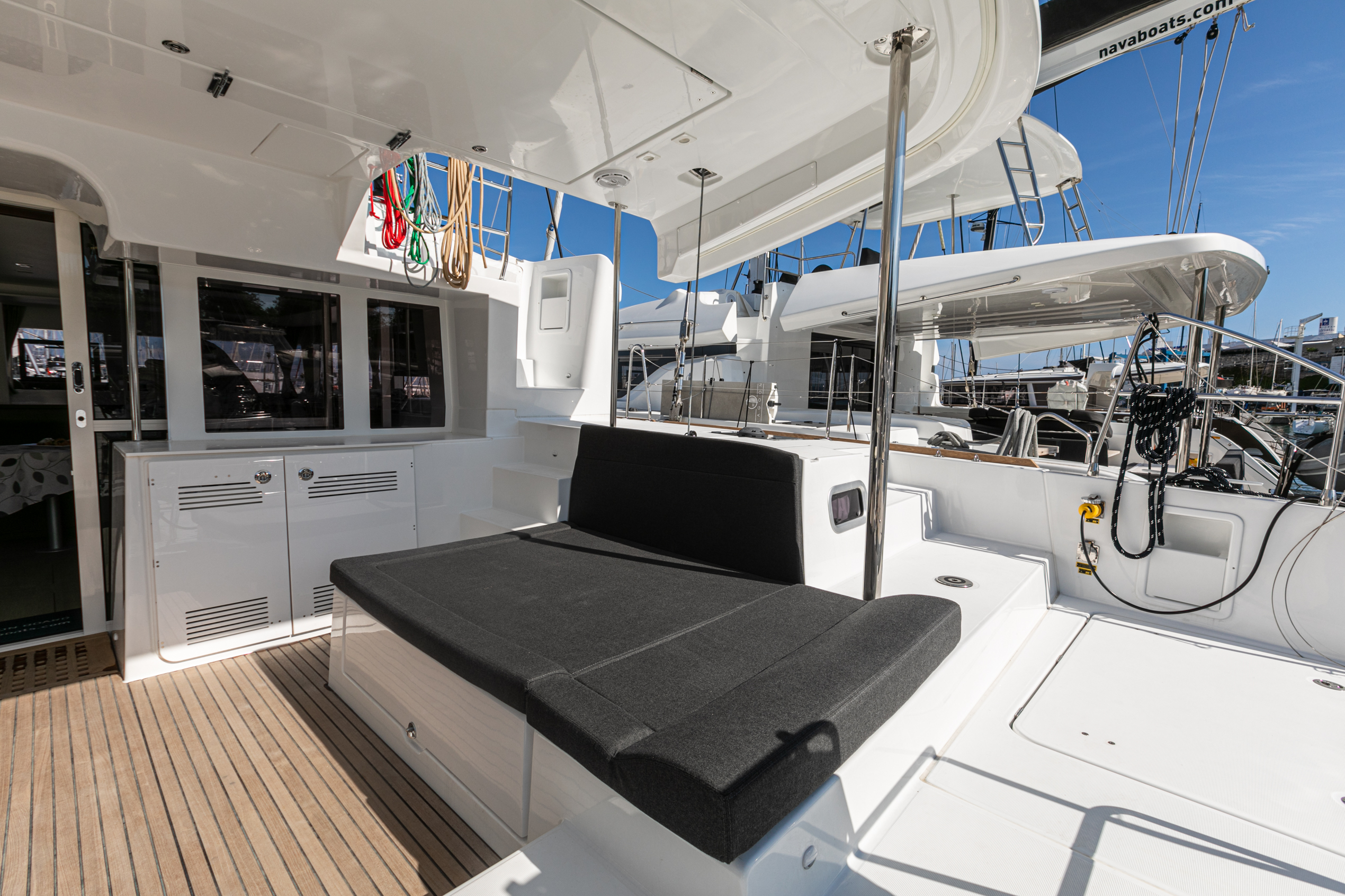 | Outside | 220 V-Landanschluss, Biminitop, Cockpitdusche, Cockpitkühlschrank, Cockpitlautsprecher, Cockpitpolster, Cockpittisch, Cockpitverdeck, elektr. Ankerwinsch, elektr. Genuawinsch, elektr. Winsch, Gangway, Teak im Cockpit |