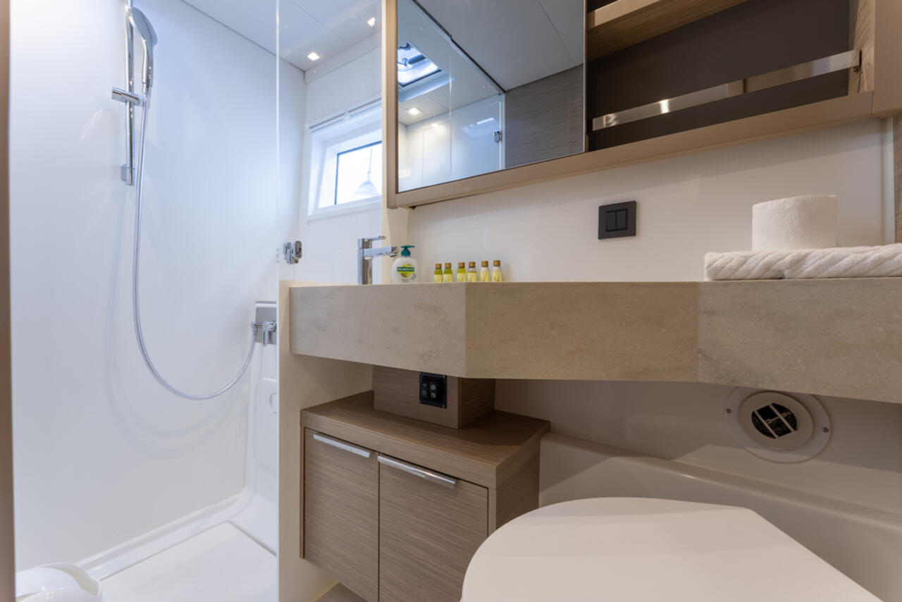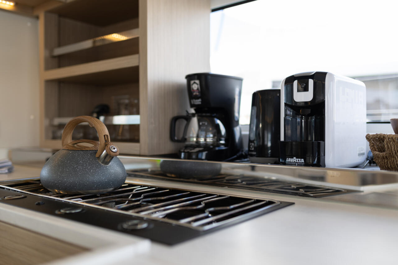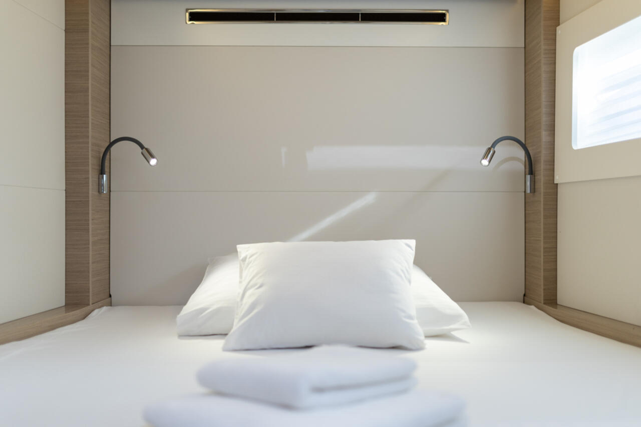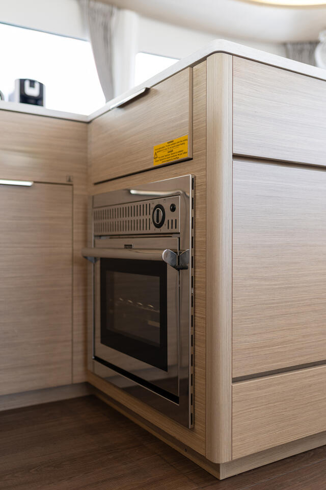 | Inside | Backofen, Eiswürfelmaschine, Fön, FUSION Sound System, Gasherd, Gefrierschrank, Generator, Heizung, Kaffeemaschine, Klimaanlage, Kühlschrank, Ladegerät, Lautsprecher im Salon, TV, Watermaker, WC (elektr.) |